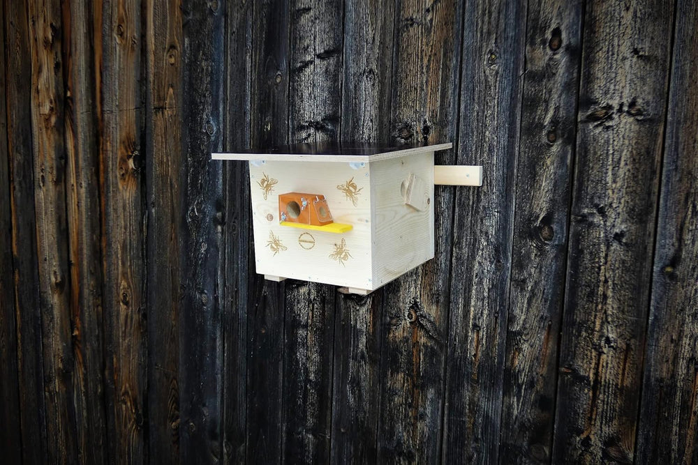 - 👉Der Witterungsgeschützte seitliche Eingang hat eine WACHSMOTTENSPERRE und ein Sichtfenster aus Plexiglas tragen massiv zum Schutz des Hummelvolkes bei.