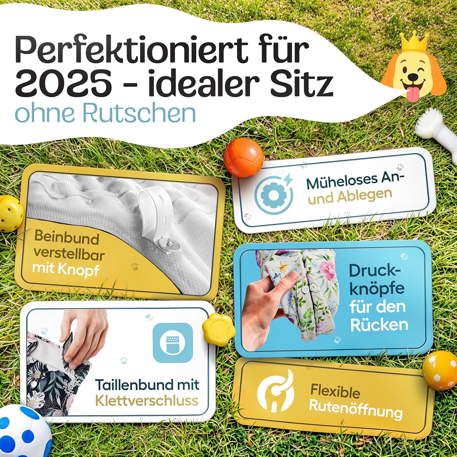 - ✅ 𝗣𝗘𝗥𝗙𝗘𝗞𝗧𝗘 𝗣𝗔𝗦𝗦𝗙𝗢𝗥𝗠 - Die Hundewindel verfügt über 3 Einstellmöglichkeiten für einen bestmöglichen Sitz: Verstellbarer Taillenumfang mittels breiter Klettlaschen + justierbarer elastischer Beinbund +