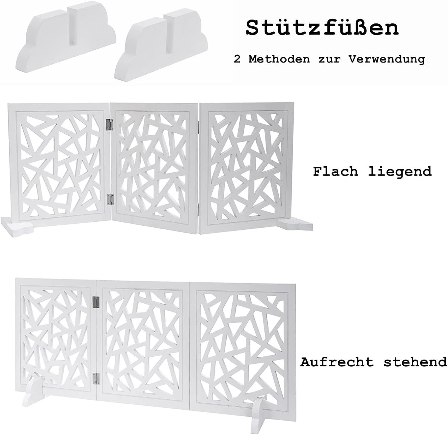 - ATTRAKTIVES AUSSEHEN -Unser klappbares Hundegitter besteht aus Massivholz und hat eine weisse Farbe, die zu jedem Einrichtungsstil passt. Das Absperrgitter sorgt für eine sichere Umgebung für Ihr Haustier. So müssen Sie sich keine Sorgen machen, wenn