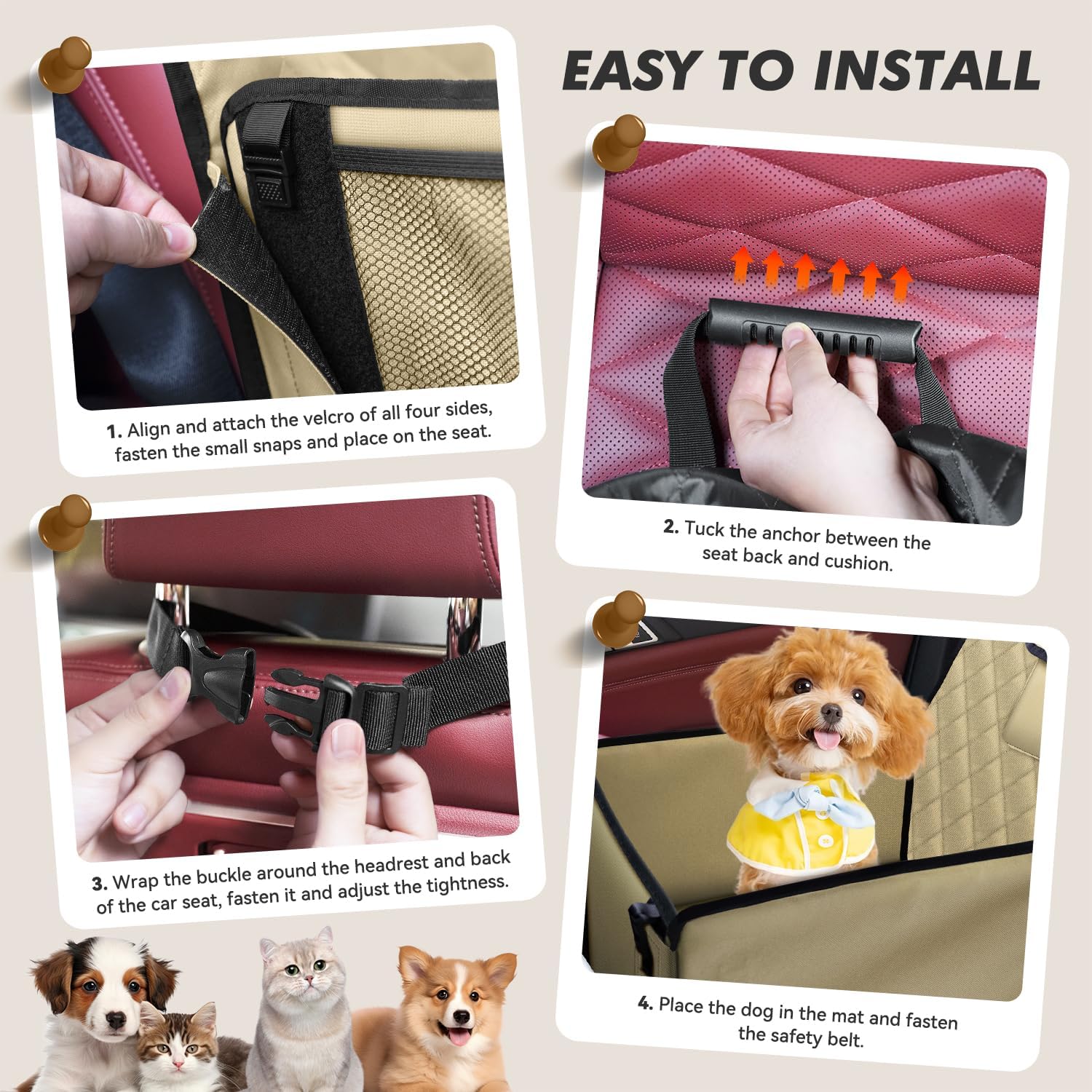 - EINFACHE INSTALLATION — Die kinderleichte Montage und Demontage in nur vier Schritten machen diesen Hundesitz Auto zur idealen Wahl für unterwegs. Dank des kompakten Designs ist er einfach zu verstauen und zu reinigen. Die integrierte