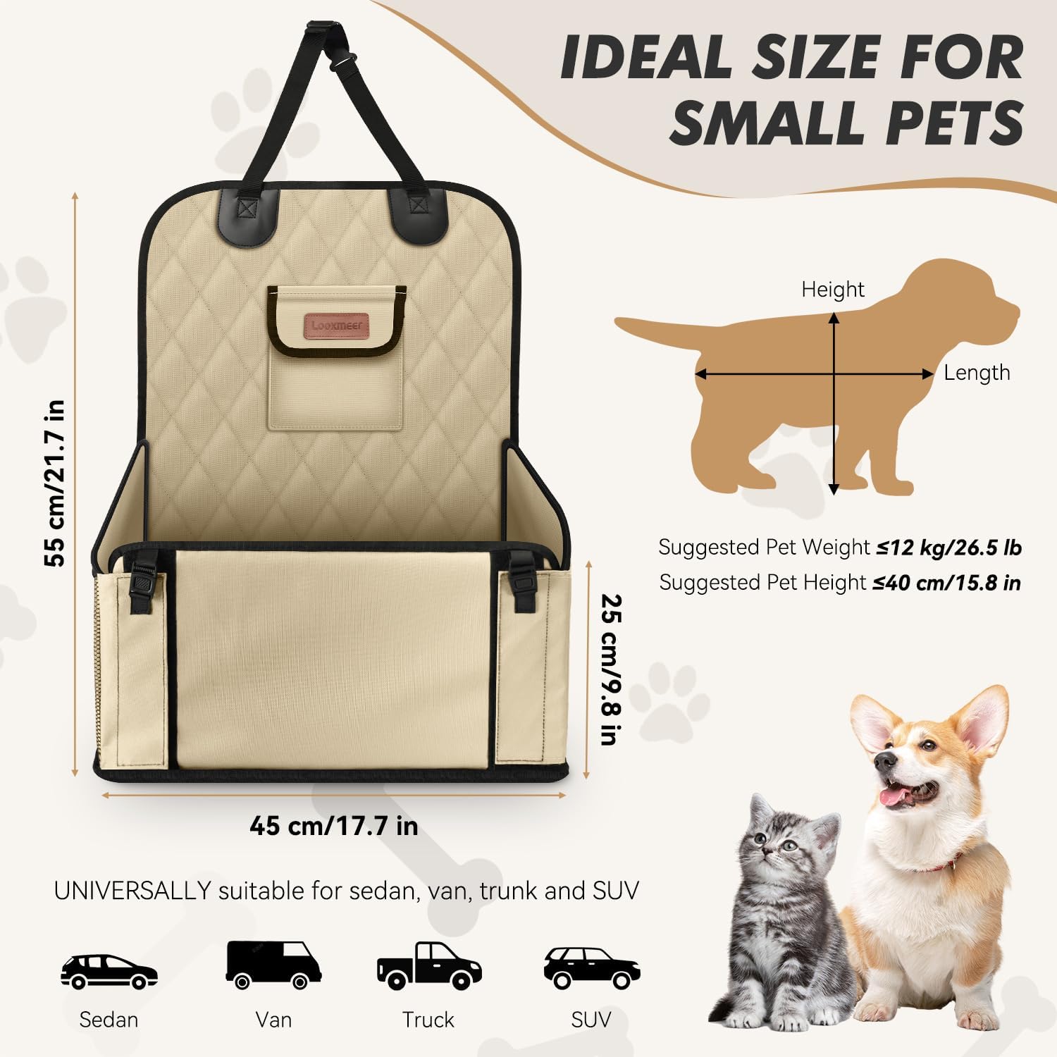- BESTE WAHL — Jede Wand des Hundesitzes ist verstärkt und bietet hervorragende Haltbarkeit für kleine bis mittelgrosse Haustiere bis zu 12 kg. Der Sitz passt auf Beifahrer- und Rücksitze in fast allen Fahrzeugen und bleibt dank des rutschfesten