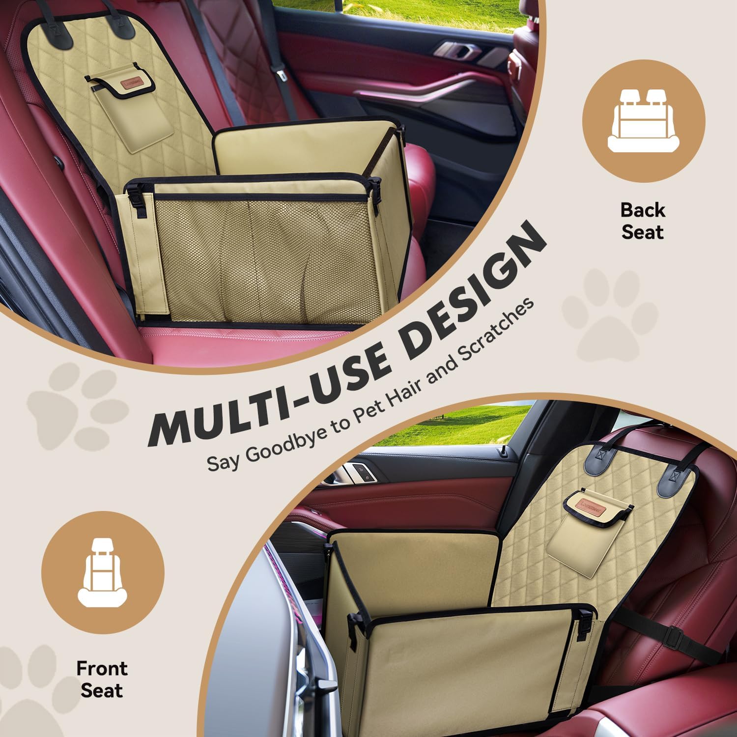- PERFEKTER SCHUTZ — Unser Hundeautositz aus 600D Oxford ist kratzfest und bietet Schutz vor Tropfwasser und Spritzwasser. Die einfache Reinigung und Anti-Haar-Funktion schützen Ihre Autositze vor Hundeurin, Tierhaaren und Klauenspuren