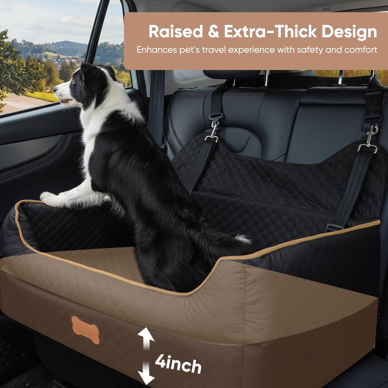 - 【Erhöhungsdesign】: Unser Auto-Hundesitz erhöht Ihre Lieblinge um bis zu 4 Zoll (10 cm), sodass sie eine bessere Aussicht aus dem Fenster haben und Reiseängste reduzieren können. Mit 3 verstellbaren Sicherheitsgurten bietet es Ihrem Hund