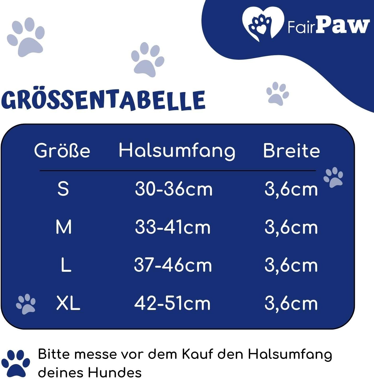 - Einfach anzulegen - Egal ob Golden Retriever, Dackel oder Labrador das FairPaw Halsband schmiegt sich perfekt an den Hundehals deines Lieblings. Dank dem verstellbaren Verschluss aus Kunstleder lässt sich das Halsband superleicht an- und ablegen.