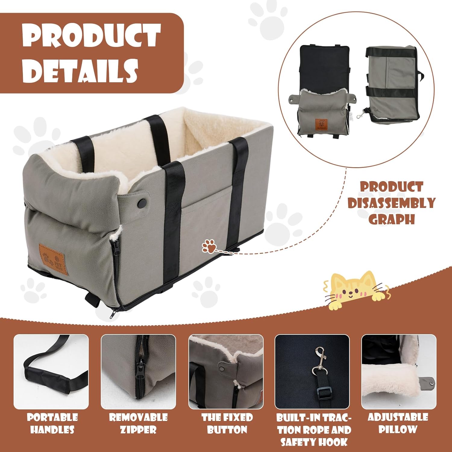 - 【Abrieb- und beissfest】 Langlebig. Die Unterseite besteht aus Kunststoff-Oxford-Gewebe, ist rutschfest und feuchtigkeitsbeständig. Das rutschfeste Design sorgt dafür, dass Ihr Haustier gut auf dem Sitz bleibt. Auf beiden Seiten befinden sich