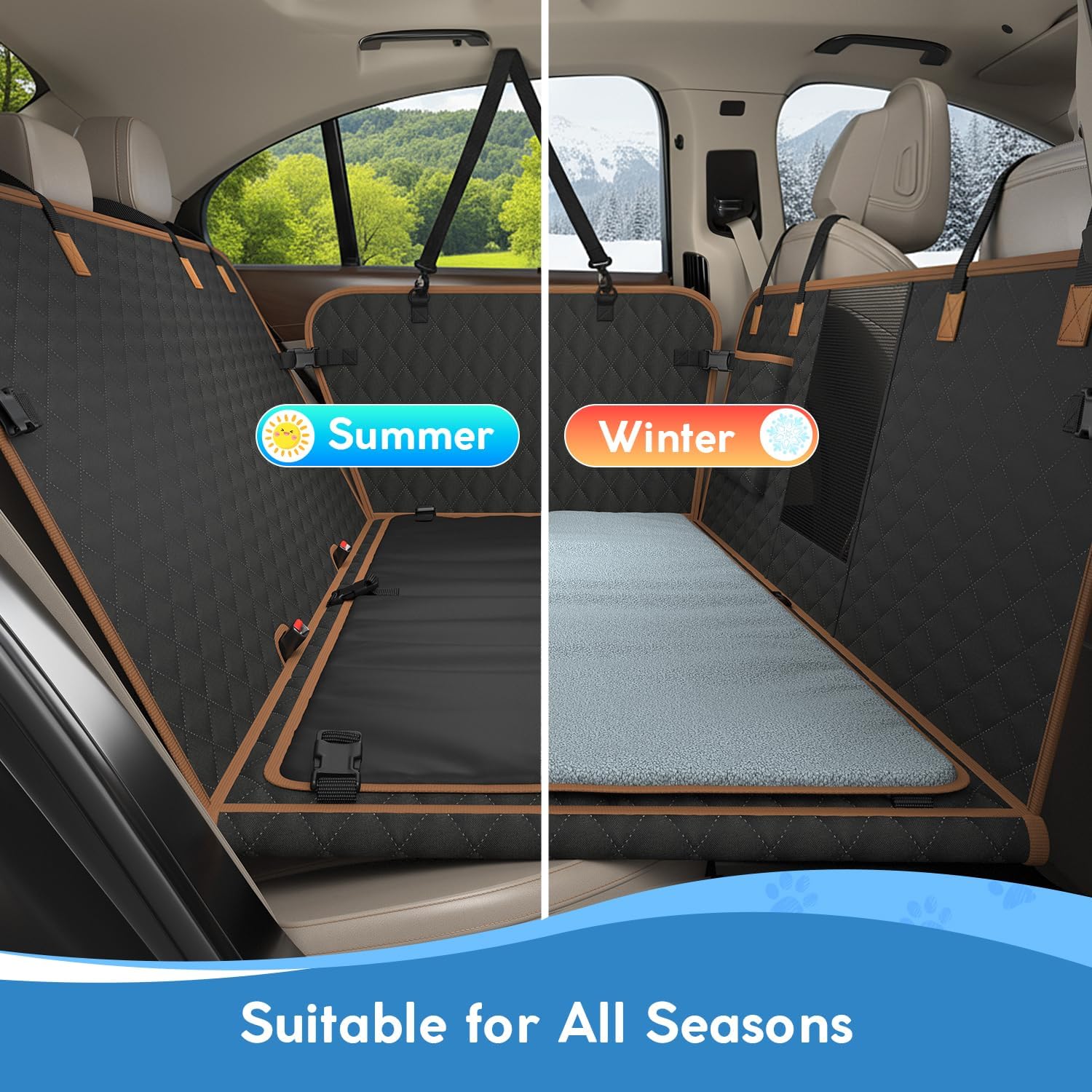 - Was Sie Erhalten: 1 doppelseitiges Kissen, grau für den Winter und schwarz für den Sommer, das den Rücksitz für Ihren Hund weicher macht; Hunde-Rücksitz mit 8 stabilen Böden, genug, um Ihren Hund zu stützen; 1 Hundekissen, das den Rücksitz für