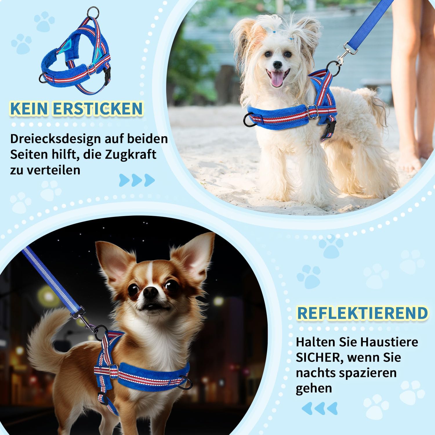 - 【Langlebig und leicht】: das Hundegeschirr und die Leine sind aus hochwertigen Materialien gefertigt und extrem leicht, langlebig und weich. Das komplette Set wiegt nur 150g und ist für kleine Hunde, Welpen, Kätzchen und andere Kleintiere geeignet.