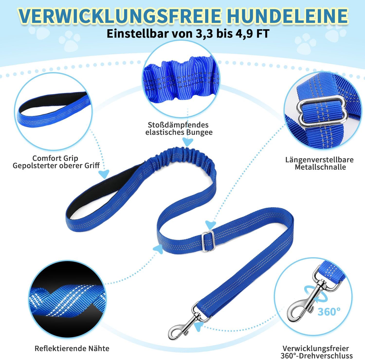 - 【Schnell zu montieren und einfach zu benutzen】: Dieses Hundegeschirr lässt sich leicht an- und ausziehen. Einfach über den Kopf des Hundes schieben und bequem um den Körper legen. Die 120 cm lange Leine besteht aus strapazierfähigem Nylon und