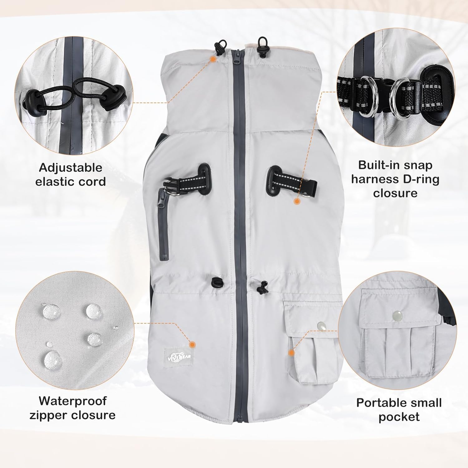 - Schnee- und winddichte Hundejacke: Die Jacke hat ein zweilagiges Design mit einer warmen Shaker-Fleece-Innenschicht und einer wasserdichten Aussenschicht, die rigoros hydrostatisch getestet wurde. Ob bei Nebel, leichtem Regen oder Schnee, dieser Mantel