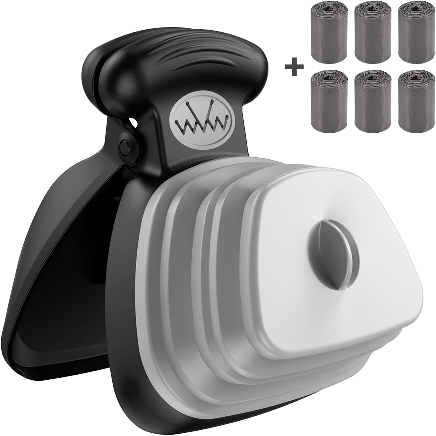 - 【EFFIZIENT】 Sauber und hygienisch, keine Sauerei an den Händen, öffnen Sie den gefalteten Teil des Aufbewahrungsschlitzes, nehmen Sie den Kotbeutel aus dem Aufbewahrungsbehälter, wickeln Sie den Poop Picker ein, klammern Sie das Kotpaket und