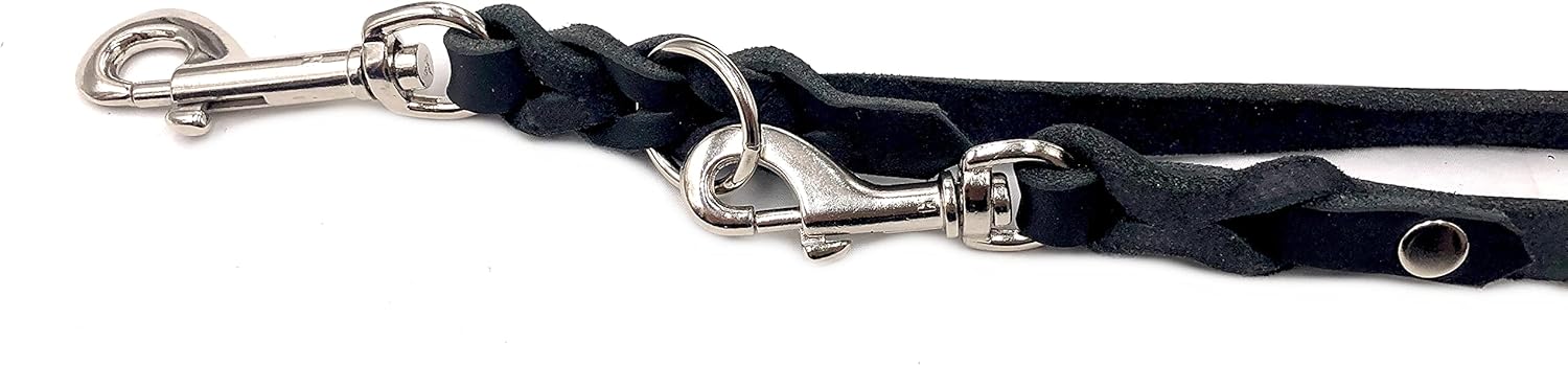 - Bei der 8mm breiten Fettlederleine haben wir einen stabilen und dennoch leichten Haken (nur 10 Gramm/ 5cm) verwendet, bei der 12mm einen sehr stabilen grösseren Haken (26 Gramm / 7,5cm) ideal für die Mittelgewichte und zu guter Letzt für unsere