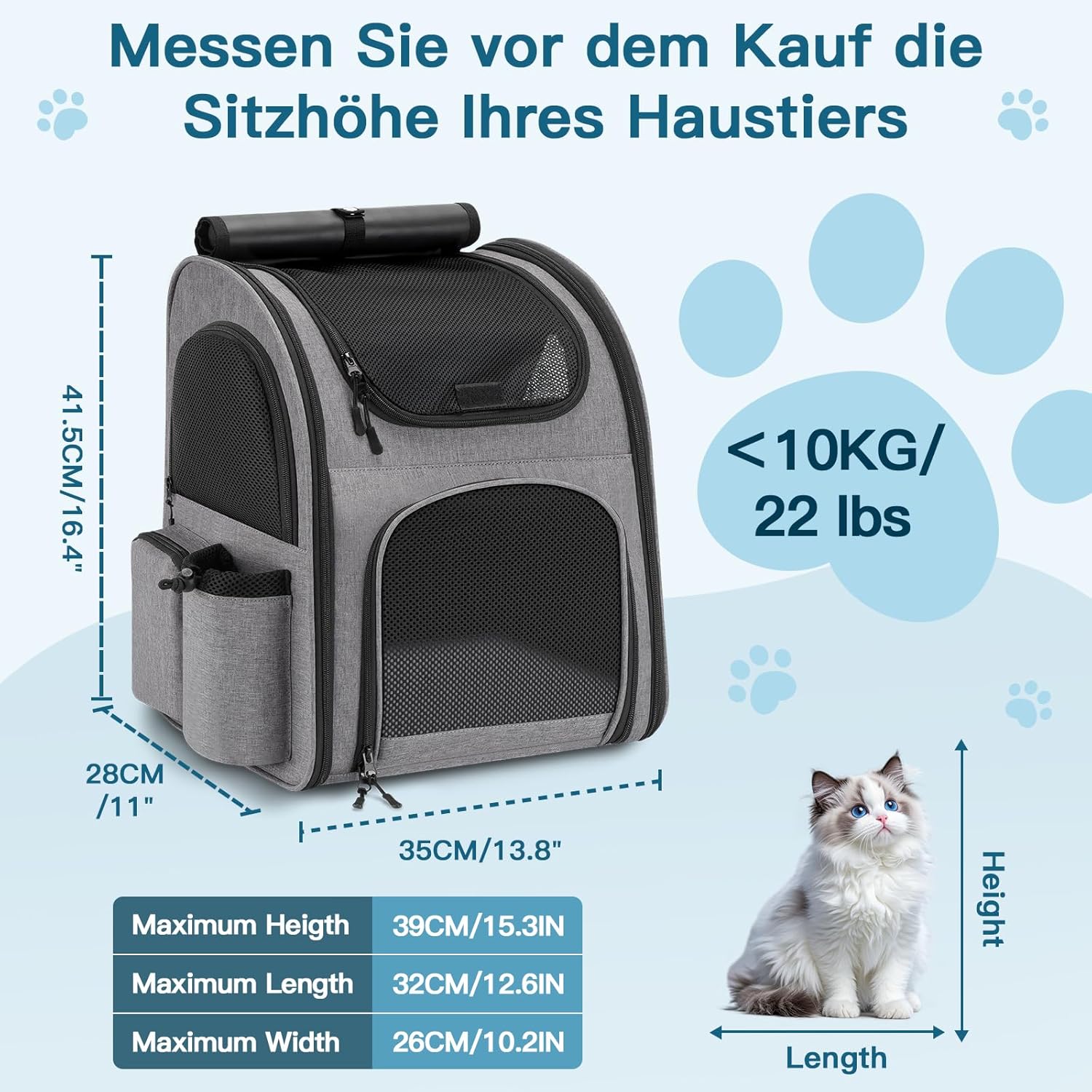 - Geräumiger Hunderucksack - Dieses leichte katzen rucksack verfügt über einen geräumigen Innenraum(16.4"×13.8"×11"/41.5×35×28cm) und ist damit grösser als die meisten anderen auf dem Markt. Es bietet kleinen und mittelgrossen Haustieren bis 10 kg