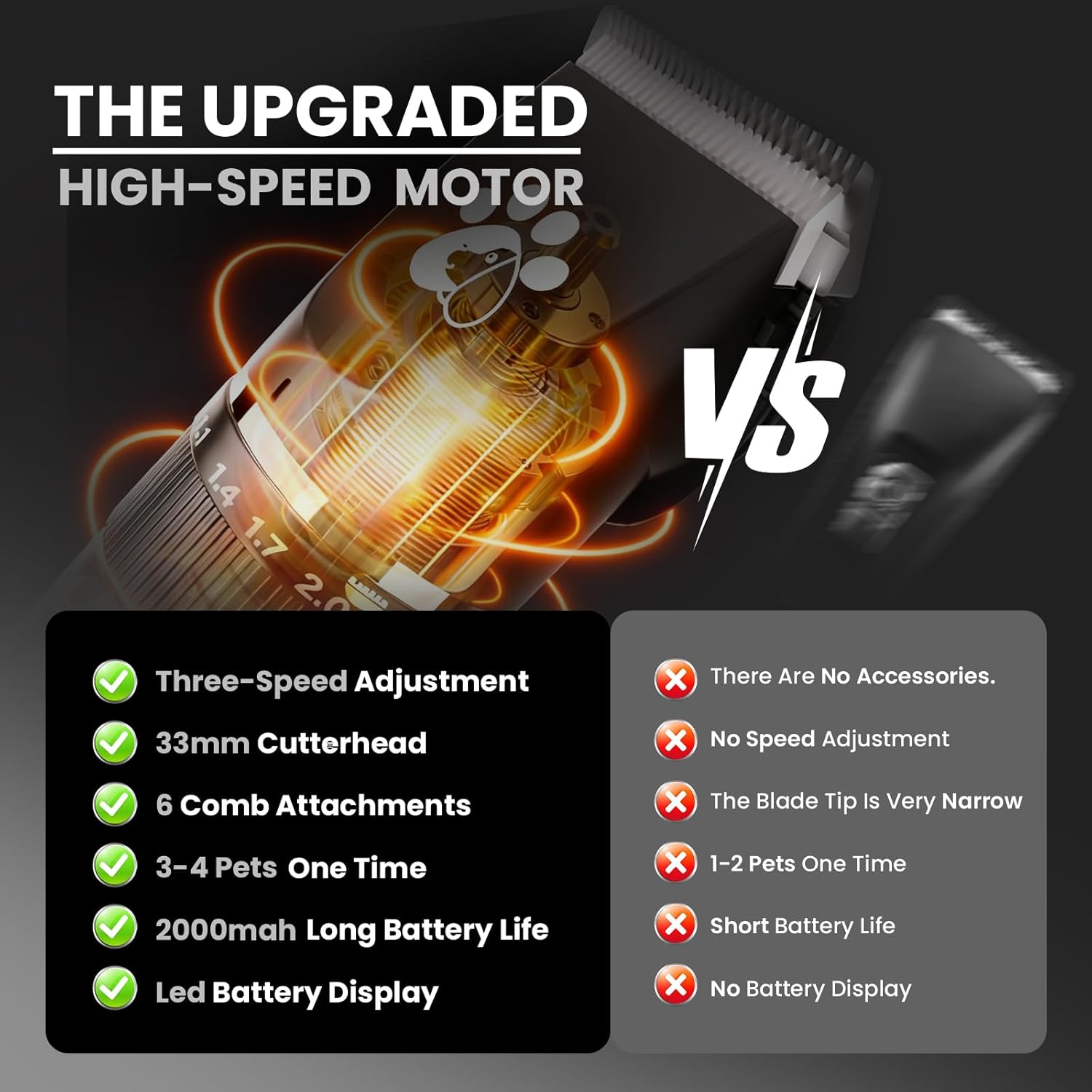 - 【3 einstellbare Geschwindigkeiten für alle Haustiere mit vollem Fell】: Passen Sie die Fellstärke Ihres Hundes oder Ihrer Katze an – niedrige Geschwindigkeit für empfindliche Bereiche wie Pfoten und Gesicht, mittlere Geschwindigkeit für