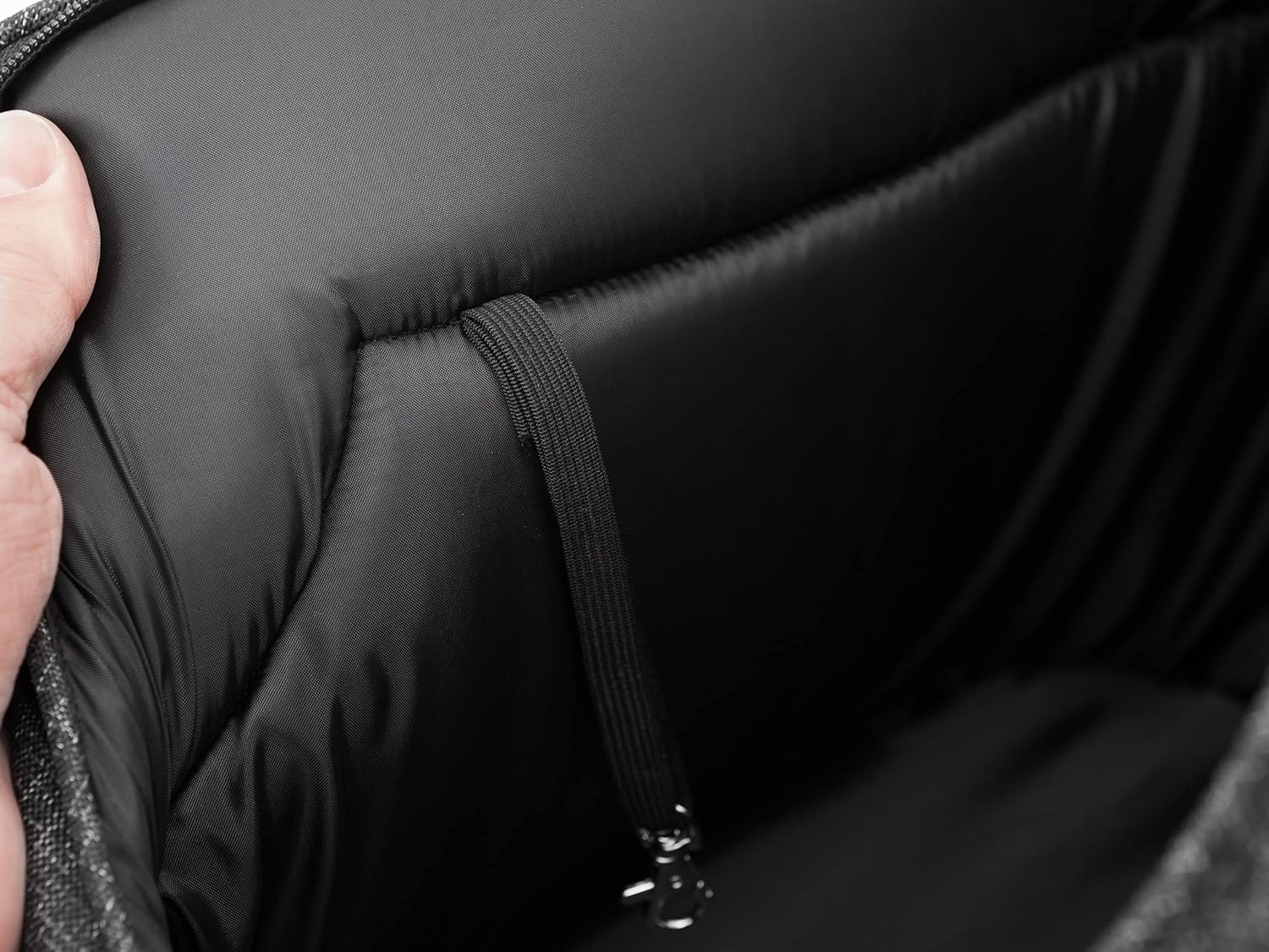 - đ SAFE - Mit dem eingenĂ€hten Karabinerhaken kann das Halsband befestigt werden, das unseren Passagier vor dem Herausfallen oder Entweichen schĂŒtzt.