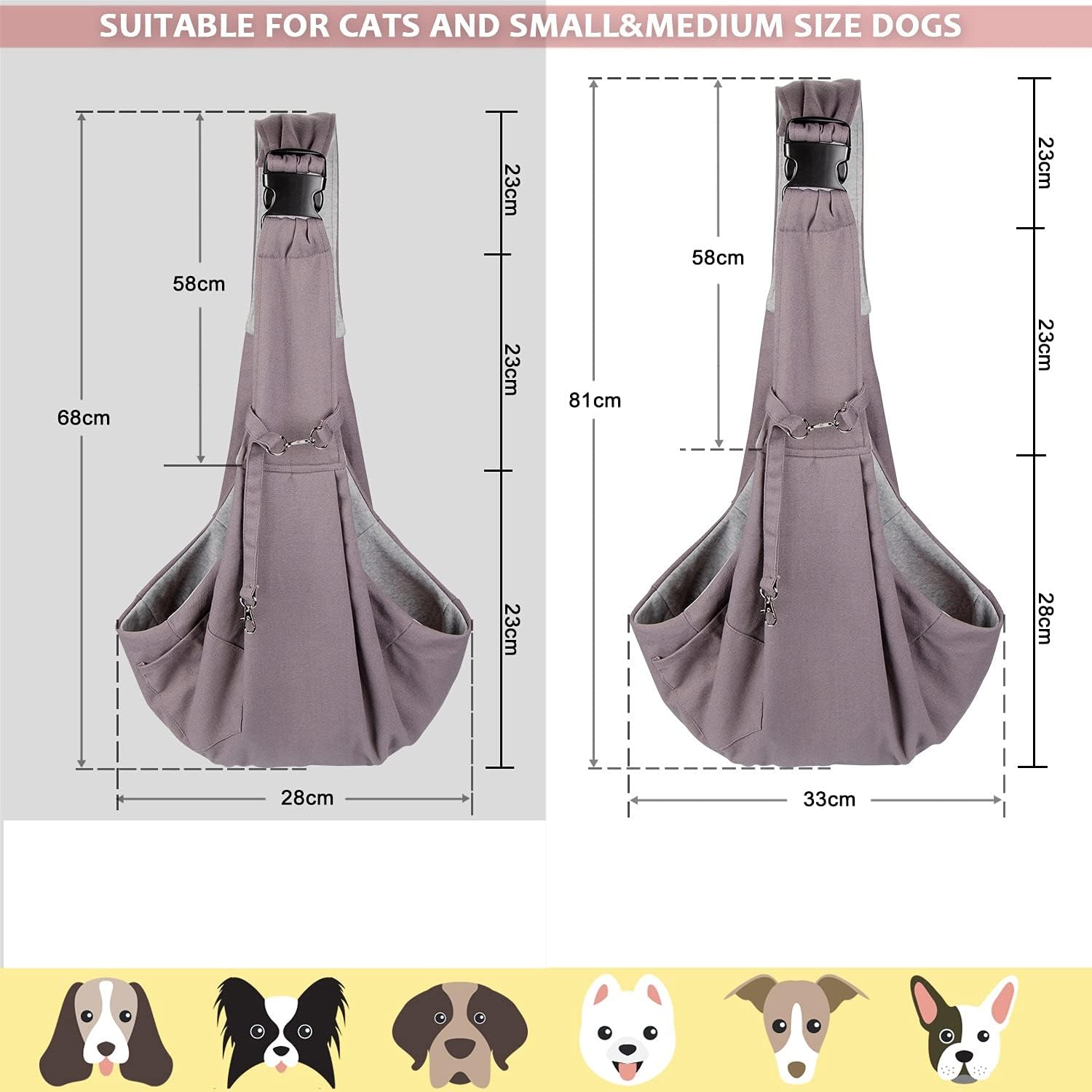 - 【Einstellbarer Schultergurt】: Aufgrund verschiedener Körpergrössen verschiedener Rassen wurde der Schultergurt so entwickelt, dass er sich einfach auf die Grösse Ihres Vierbeiners einstellen lässt. So können Sie die Tasche auch vom Welpen-Alter bis hin zum mittelgrossen Hund verwenden.
