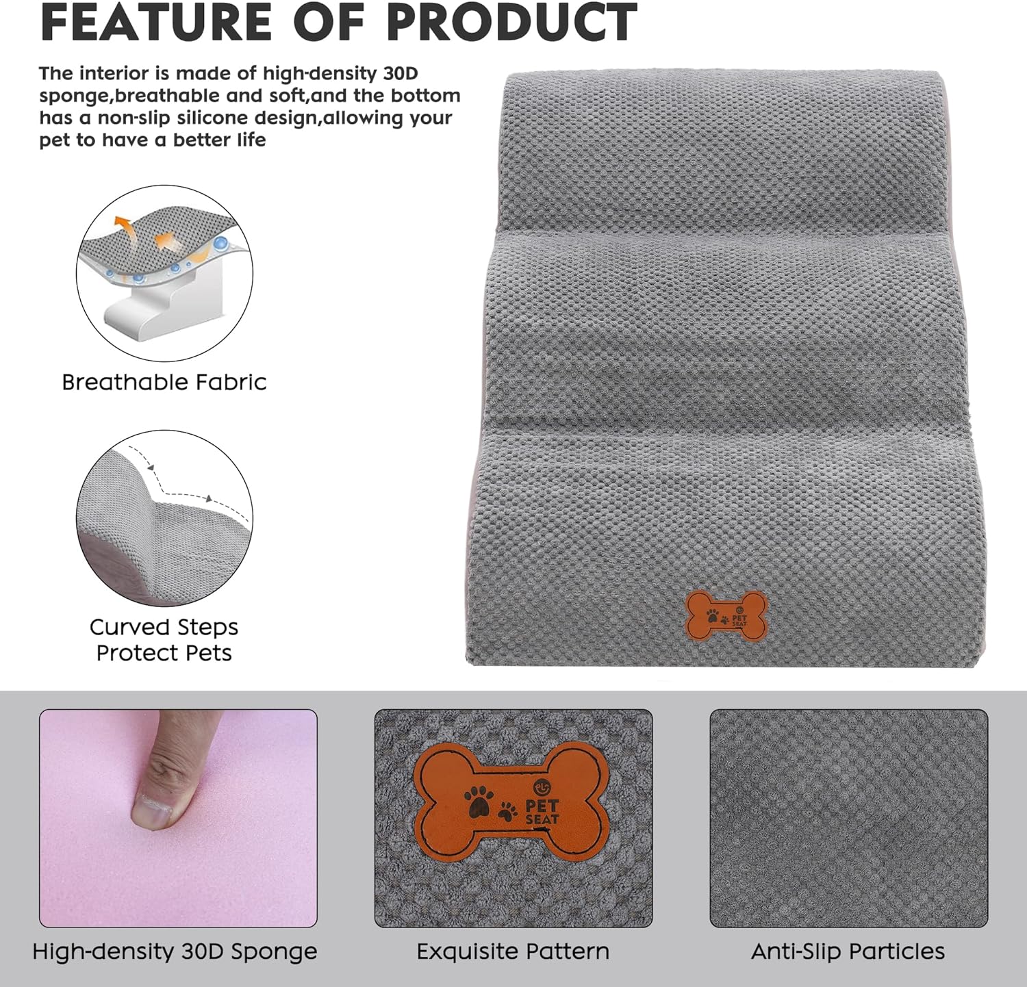 - 🐕🦴Gebogenes Stufendesign: Die Oberfläche der Haustierleiter hat ein gebogenes Design, das Haustieren das Aufsteigen erleichtert. Es ist besonders freundlich zu einigen verletzten älteren Haustieren oder kleinen Katzen.