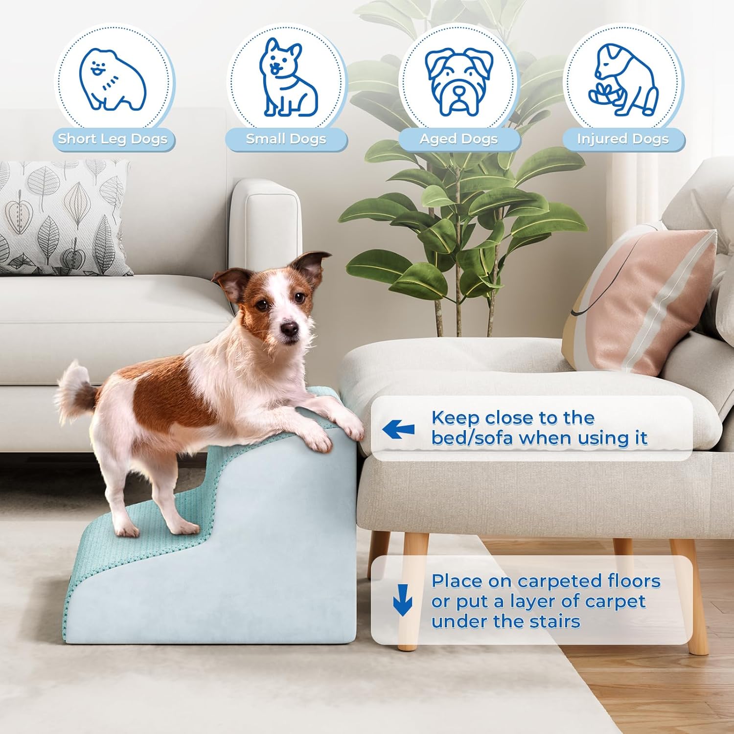 - Sicherer Aufstieg für Ihren Vierbeiner. Die Hundetreppe aus hochdichtem 25D Schaumstoff bietet optimalen Halt und schont die Gelenke Ihres Haustieres. Ideal für Welpen, Kätzchen und ältere Tiere. Leicht und einfach zu transportieren.