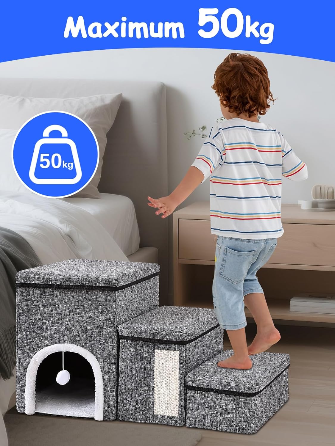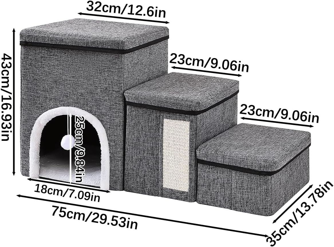 - Abnehmbar und sauber: Diese vielseitige Katzentreppe aus Nachahmung von Leinenmaterial ist resistent gegen Schmutz und Verschleiss; bei Bedarf leicht zu zerlegen und zu reinigen und erfordert keinen grossen Reinigungsraum