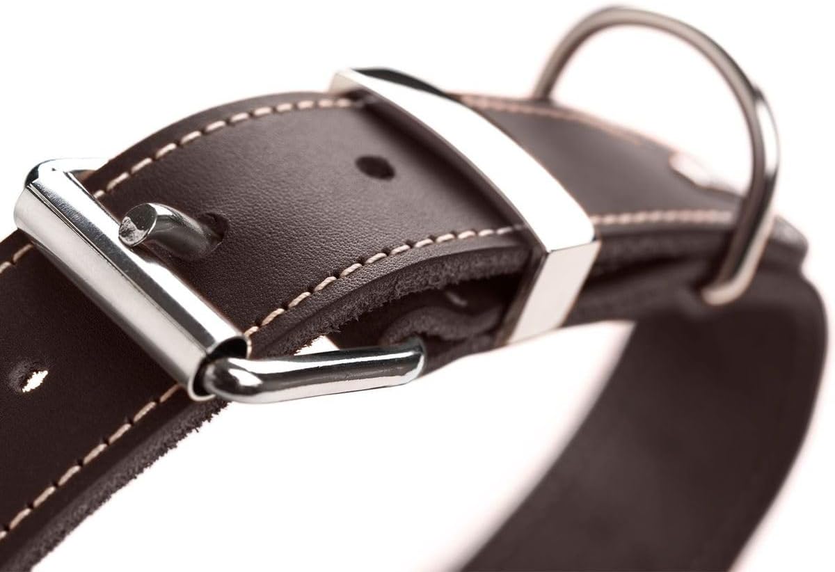 - Das Leder ist spezialgegerbt und geölt sowie durchgefärbt, was dem Halsband Geschmeidigkeit, Belastbarkeit und Langlebigkeit verleiht