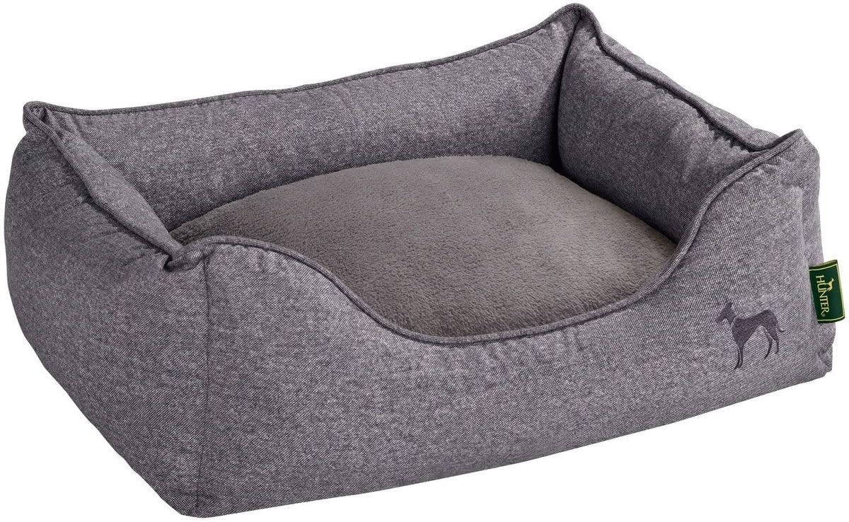 HUNTER Boston Hundesofa, Hundebett, Wendekissen mit Plüschbesatz,pflegeleicht, 80 x 60 cm, grau grau