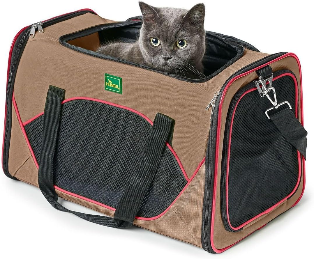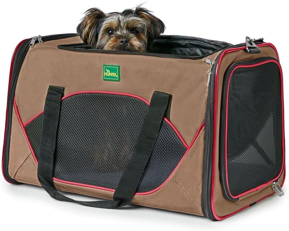 HUNTER KANSAS Tragetasche für Hunde und Katzen, zusammenfaltbar, 50 x 30 x 30 cm, beige/rot beige/ r