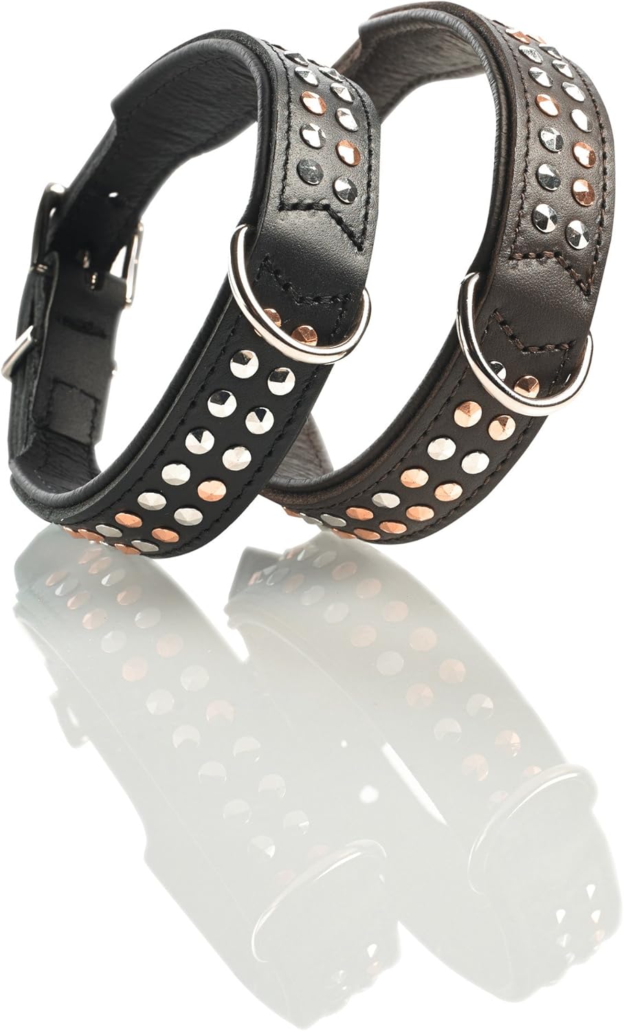 - Rockiges Hundehalsband mit geschmeidigem Softvollrindleder und silber- und kupferfarbender Nietenverzierung