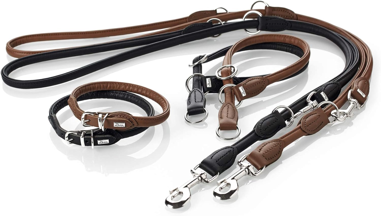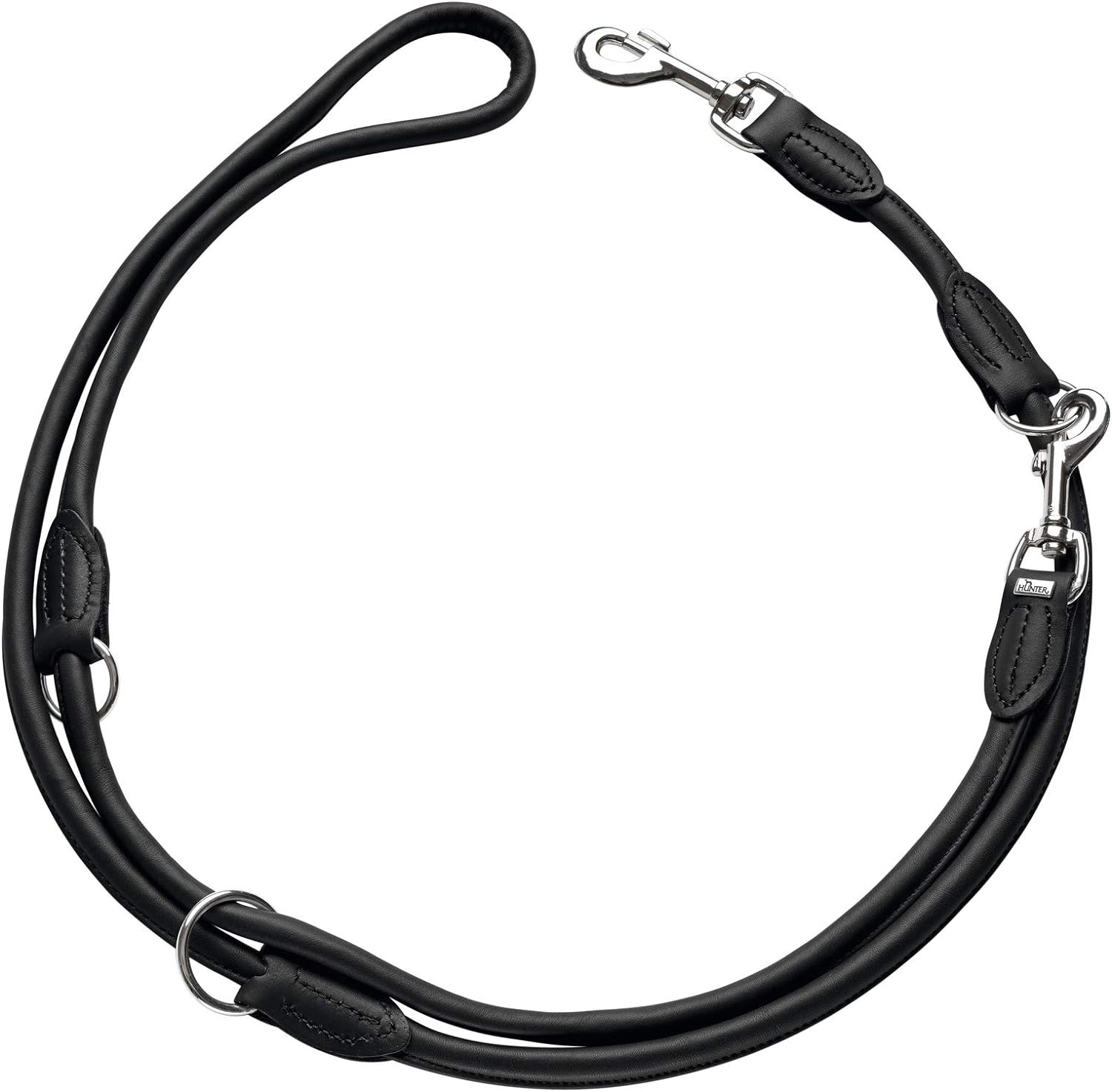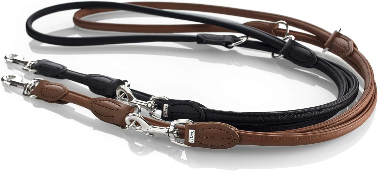 - Verstellbare, rundgenähte Hundeführleine aus hochwertigem Rindnappaleder