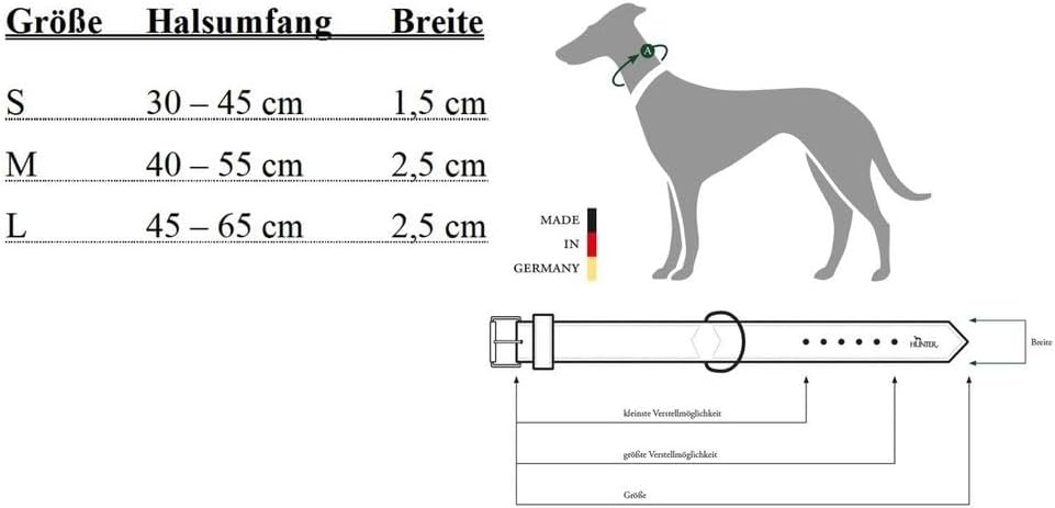 - Pflegeleichte Halsung für Hunde aus hochwertigem Kunstleder und mit bewährtem HUNTER Aluminium Steckverschluss