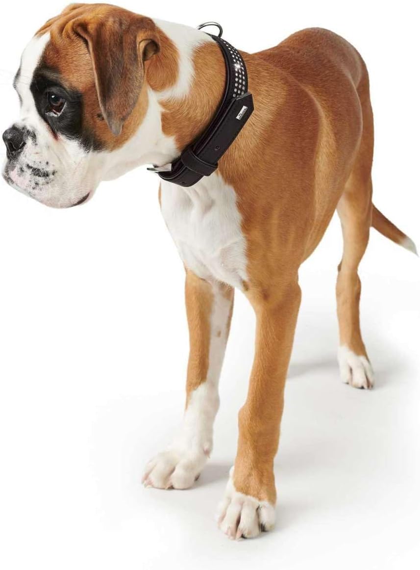 - Glamouröses Hundehalsband mit hochwertigem Kunstleder in Nubuk-Optik und dreireihigen Strasssteinbesätzen