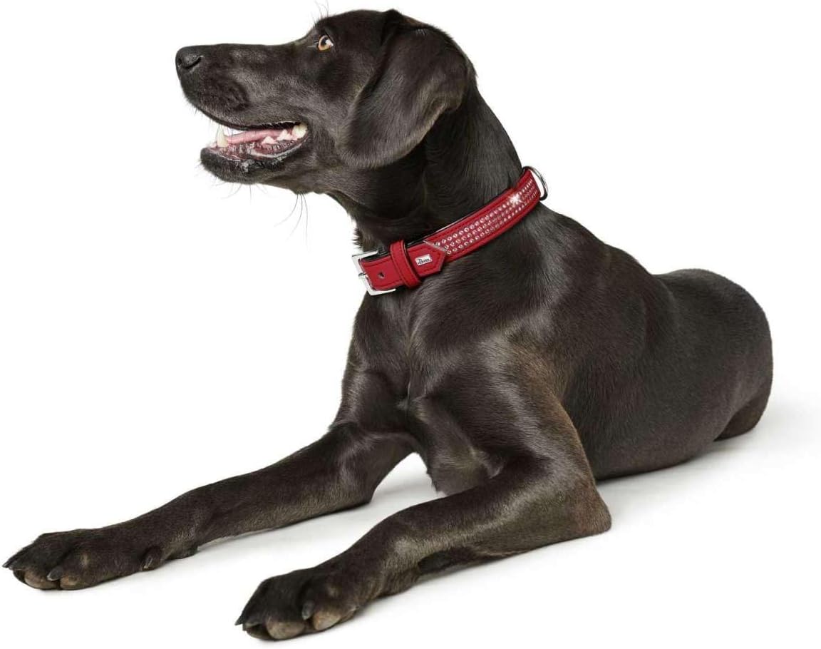 - Glamouröses Hundehalsband mit hochwertigem Kunstleder in Nubuk-Optik und dreireihigen Strasssteinbesätzen
