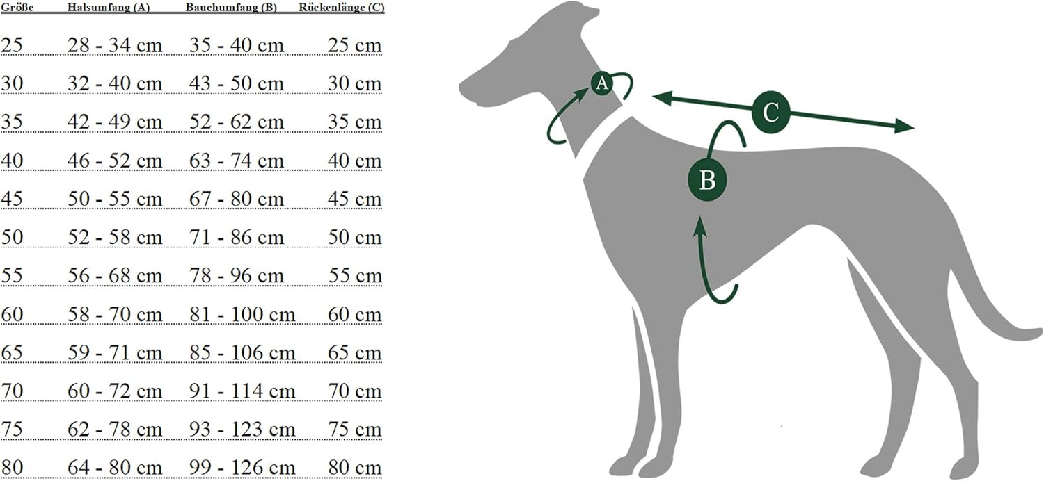 - Geeignet für eine Rückenlänge von ca. 70 cm, Abmessung Halsumfang ca. 42 - 78 cm und Bauchumfang ca. 74 - 118 cm