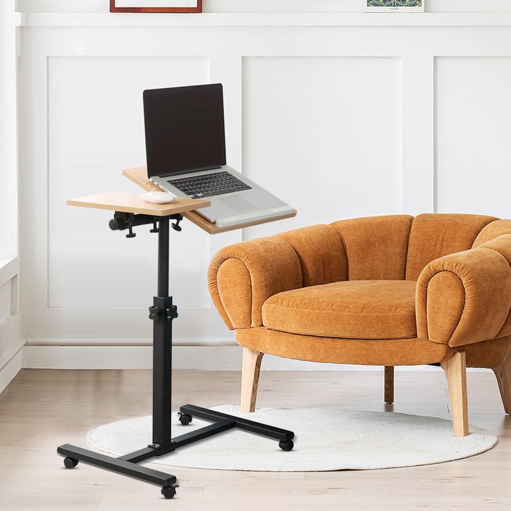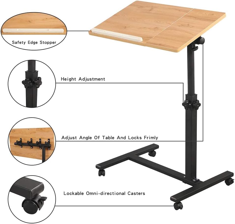 - ♡【MATERIALIEN & FUNKTION】-MDF-Buche auf der Oberseite und schwarzer Metallrahmen. Machen Sie schlechten Arbeitsgewohnheiten ein Ende mit dem Laptop-Schreibtisch, der einen vielseitigen Arbeitsplatz auf Rollen für zu Hause oder im Büro bietet.