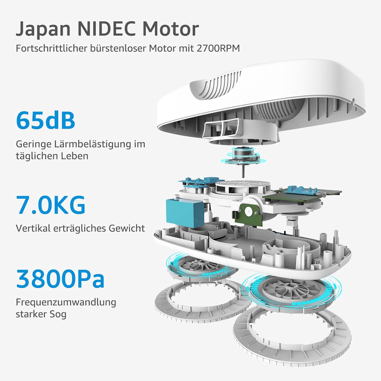 - 【Hochdichtes Mikrofaser-Mopps】: Die zwei auf der Unterseite angebrachten Wischmopps rotieren in engegengesetzte Richtungen und schieben ihrerseits ebenso Schmutz in Richtung der mittigen Einzugshaube. Die Mikrofaser-Mopps lassen sich simpel mit in die Waschmaschine schmeissen.