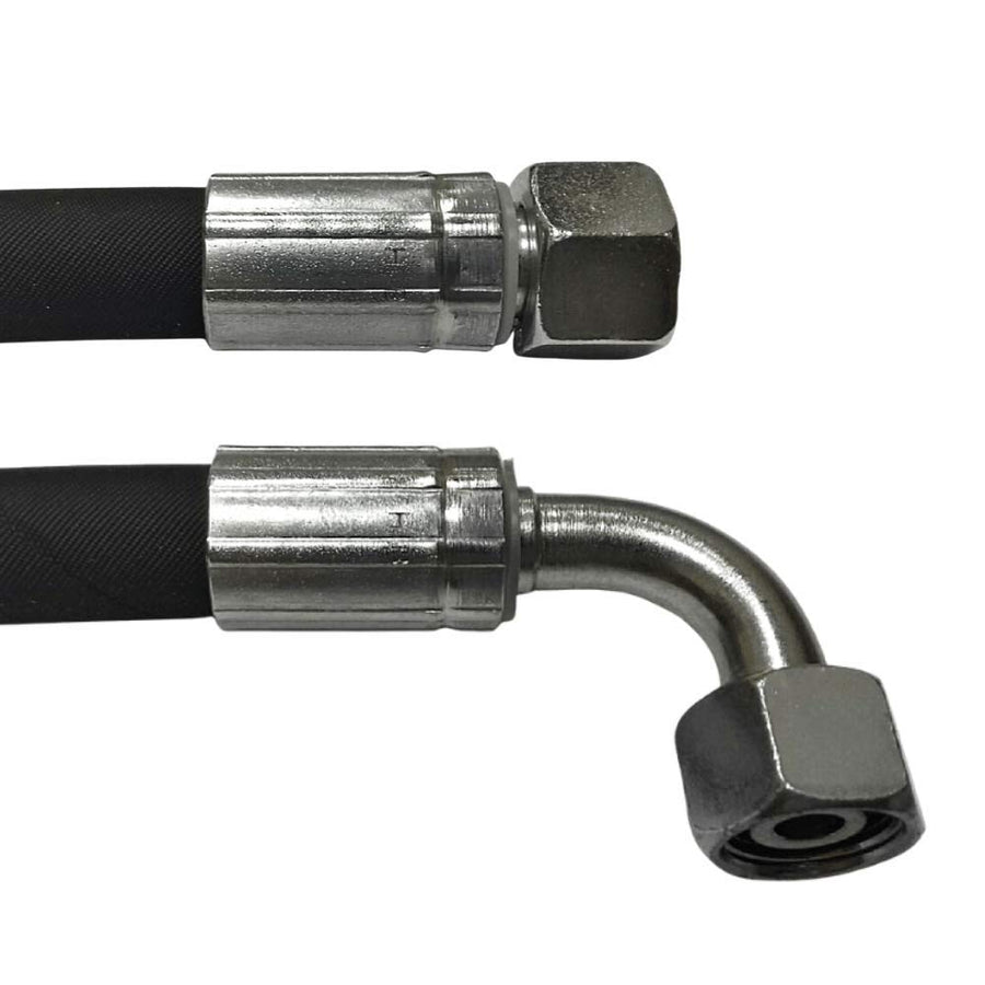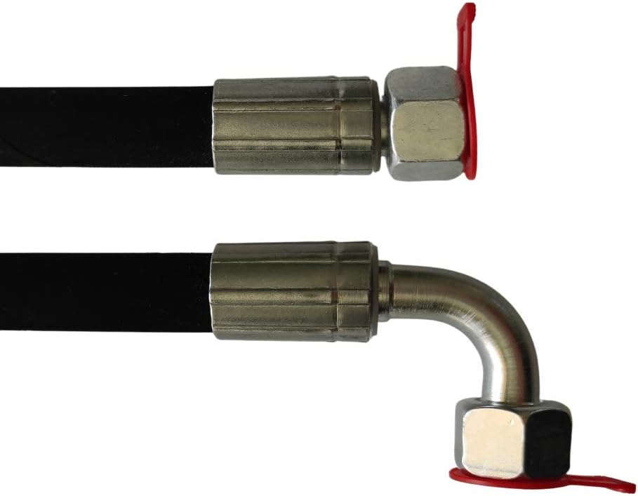 - Hydraulikschlauch 2SN 2600mm DN10 - 12L, DKOL-DKOL90, Gewinde M18x1.5 Beständig gegen Hydraulikflüssigkeiten auf Mineralölbasis, Glykol-Wasser, Wasser-Öl Emulsionen, Heizöl, Diesel