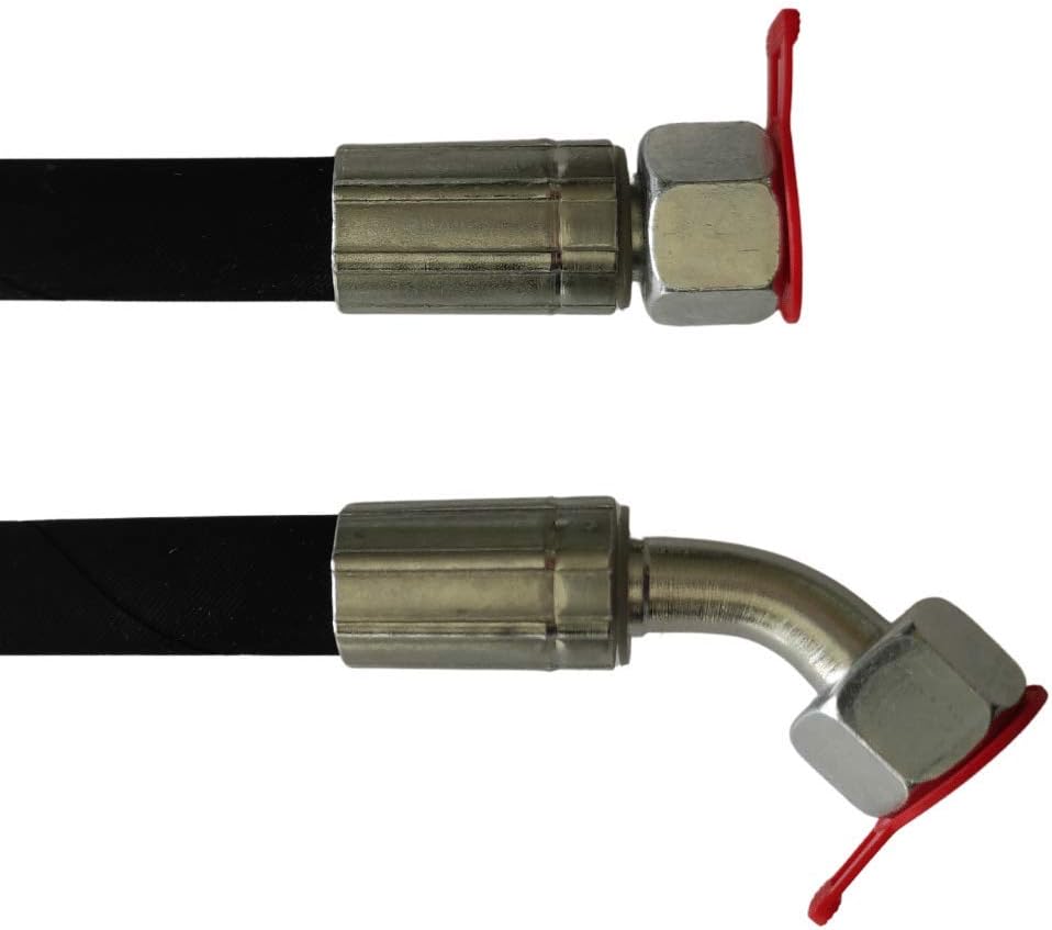 • Hydraulikschlauch 1SN 6200mm DN6 - 6L, DKOL-DKOL45, Gewinde M14x1.5 Beständig gegen Hydraulikflüssigkeiten auf Mineralölbasis, Glykol-Wasser, Wasser-Öl Emulsionen, Heizöl, Diesel