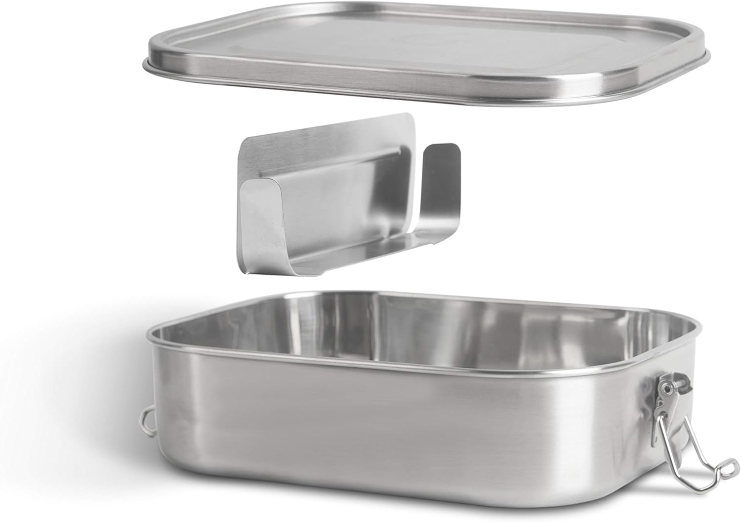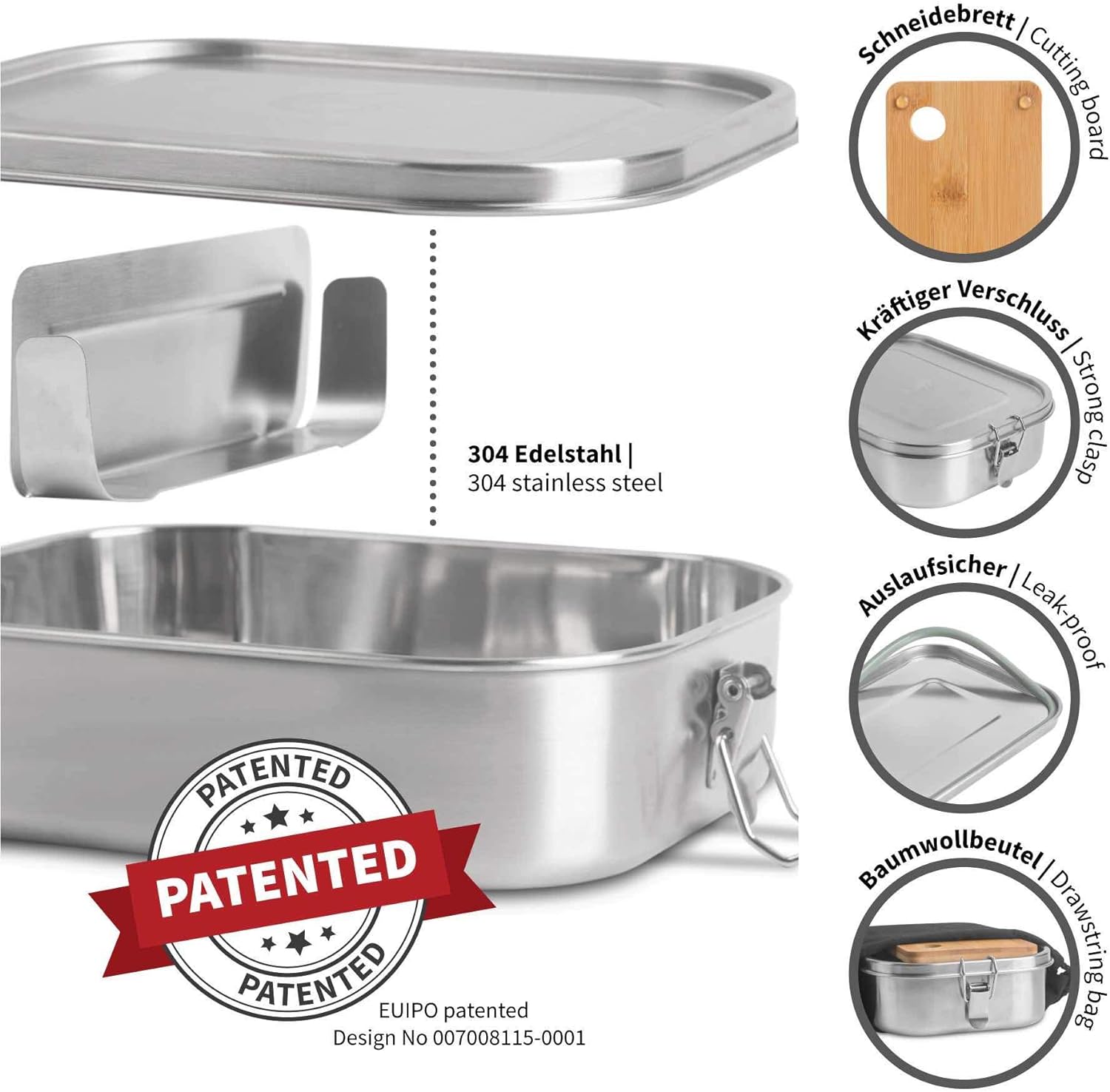 - 🙌 PATENTIERTES DESIGN - Diese hochwertige Brotdose aus Edelstahl mit Trennwand (herausnehmbar) ist ideal für Kinder, Schule, Uni, Outdoor oder Büro. Sehr pflegeleicht, BPA- und plastikfrei.