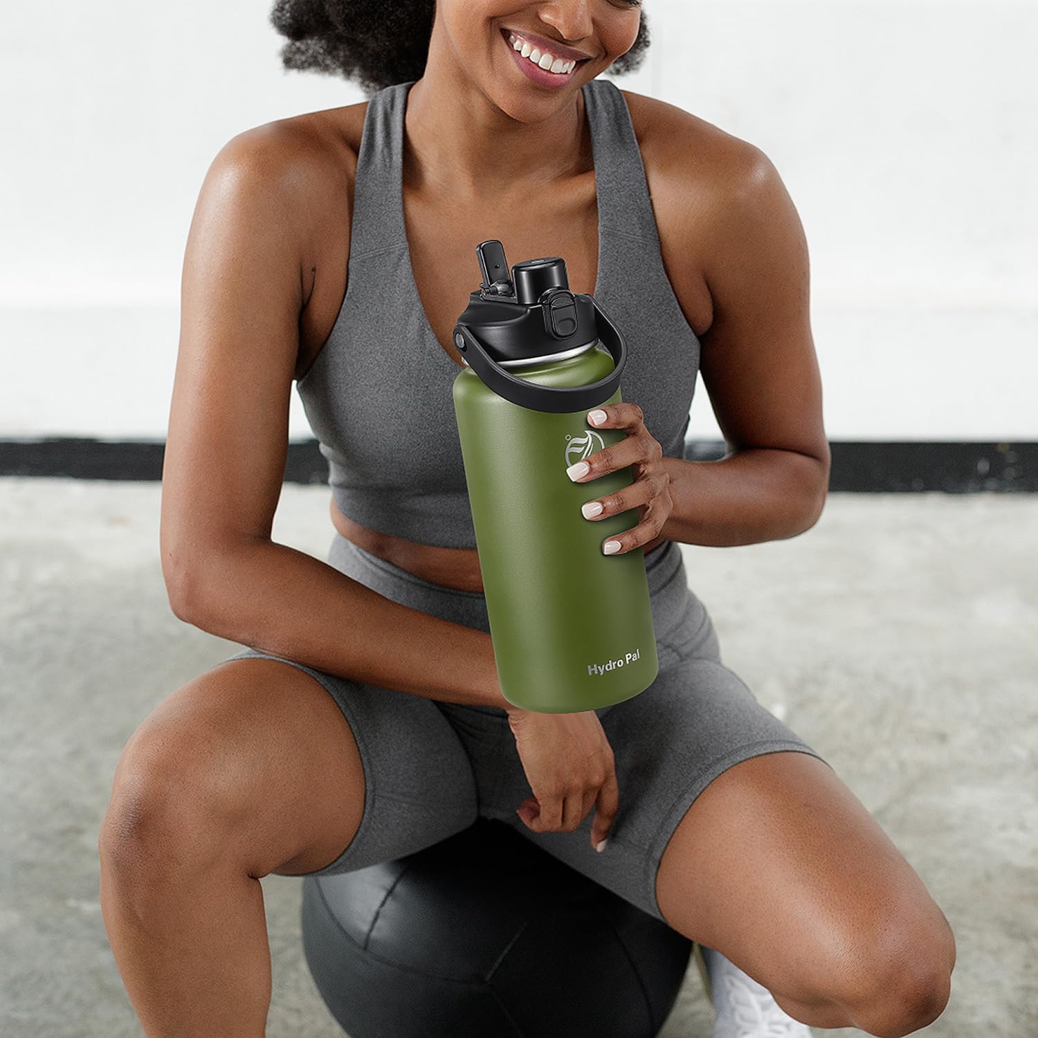 HydroPal Trinkflasche Edelstahl - 1200ml/1900ml mit Strohhalm und Henkel, BPA-Frei, Kohlensäure geei