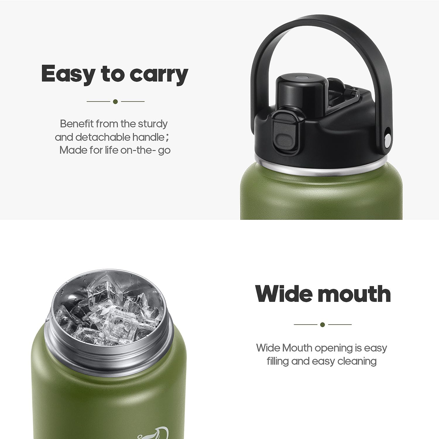 • 💧HOCHWERTIGE MATERIAL💧 Alle unsere flasche sind aus lebensmittelechtem, ungiftigem 18/8 Edelstahl gefertigt, der niemals rostet oder einen metallischen Geschmack annimmt. Durch die hochwertige Pulverbeschichtung ist die Trinkflasche leichter zu