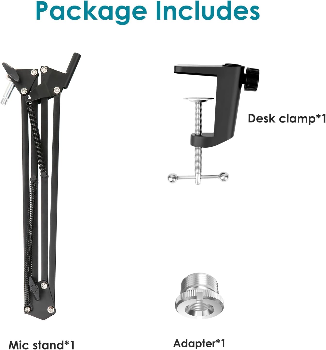 - 【Lieferumfang】1* professioneller Mikrofon Halter, 1 * Tischhalter, 1 * Gewindeadapter. Hinweis: Mikrofon ist nicht im Lieferumfang enthalten.