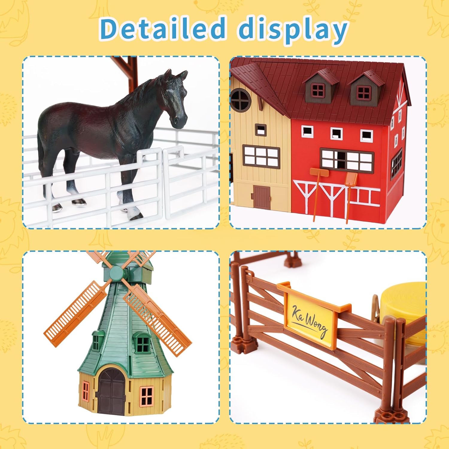 Hyrenee Bauernhof Tiere Spielzeug Set mit Windmühle Haus Pferd Stall Traktor Anhänger Tierfiguren La