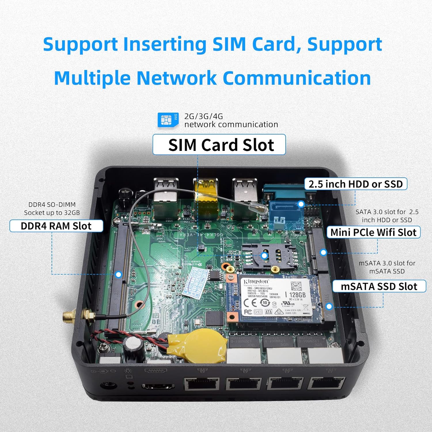 - đĄ ă3G & 4G -Netzwerk / WLAN 2,4G+5,0G / BTă Network router Motherboard Support SIM Kartensteckplatz, geniessen Sie 3G&4G WLAN Network , greifen Sie von ĂŒberall (4G Modul nicht enthalten) auf das Internet zu (4G Modul nicht enthalten). Der Mini