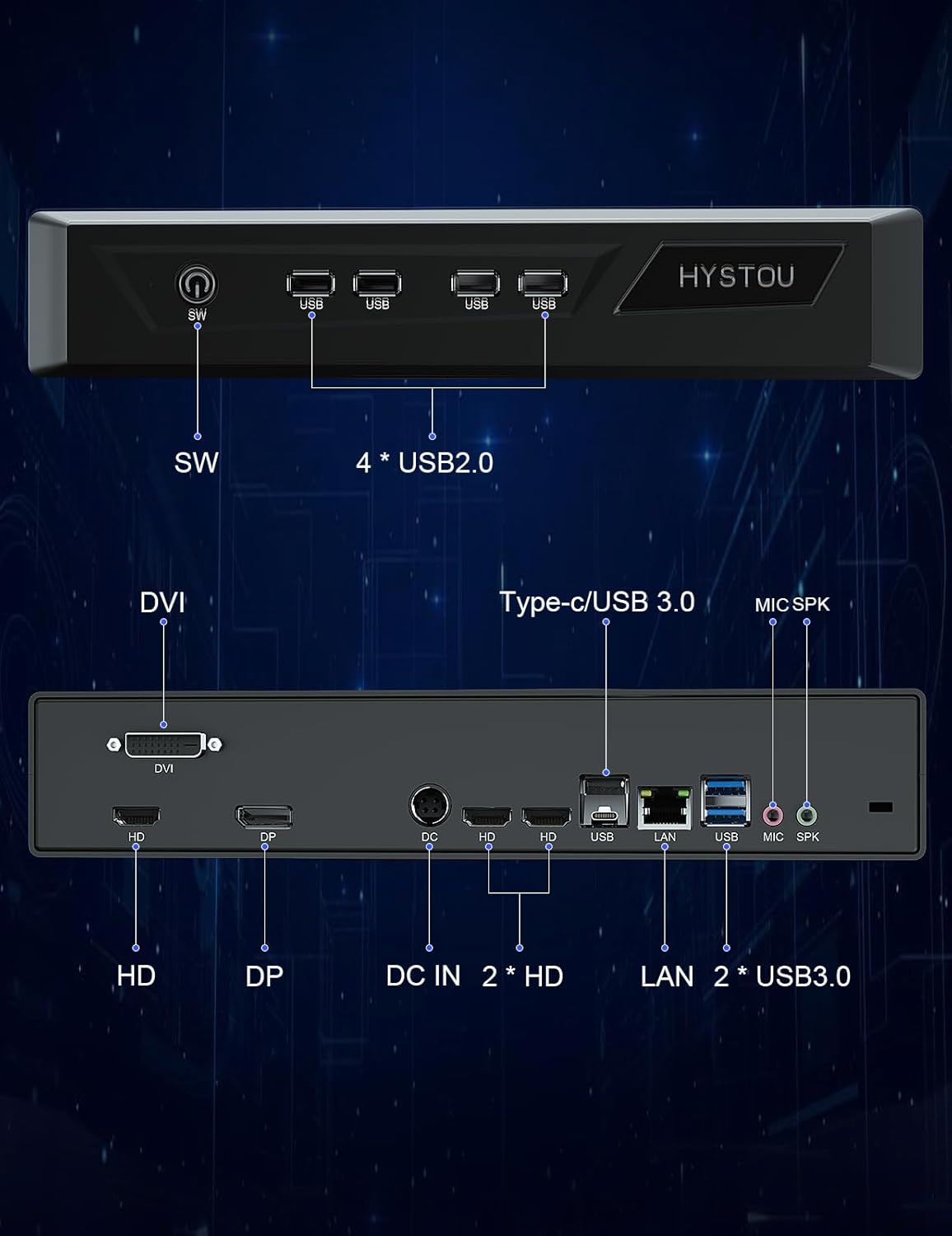 - 【Zuverlässiger Support Service】Lieferumfang: 1 x leistungsstarker Mini PC, 1 x Montagehalterung, 1 x HDMI Kabel, 1 x Netzteil, 1 x Bedienungsanleitung. nur 27,7 x 20 x 5,5 cm gross und 1,5 kg leichter Koffer. HYSTOU aktualisiert unseren Mini PC