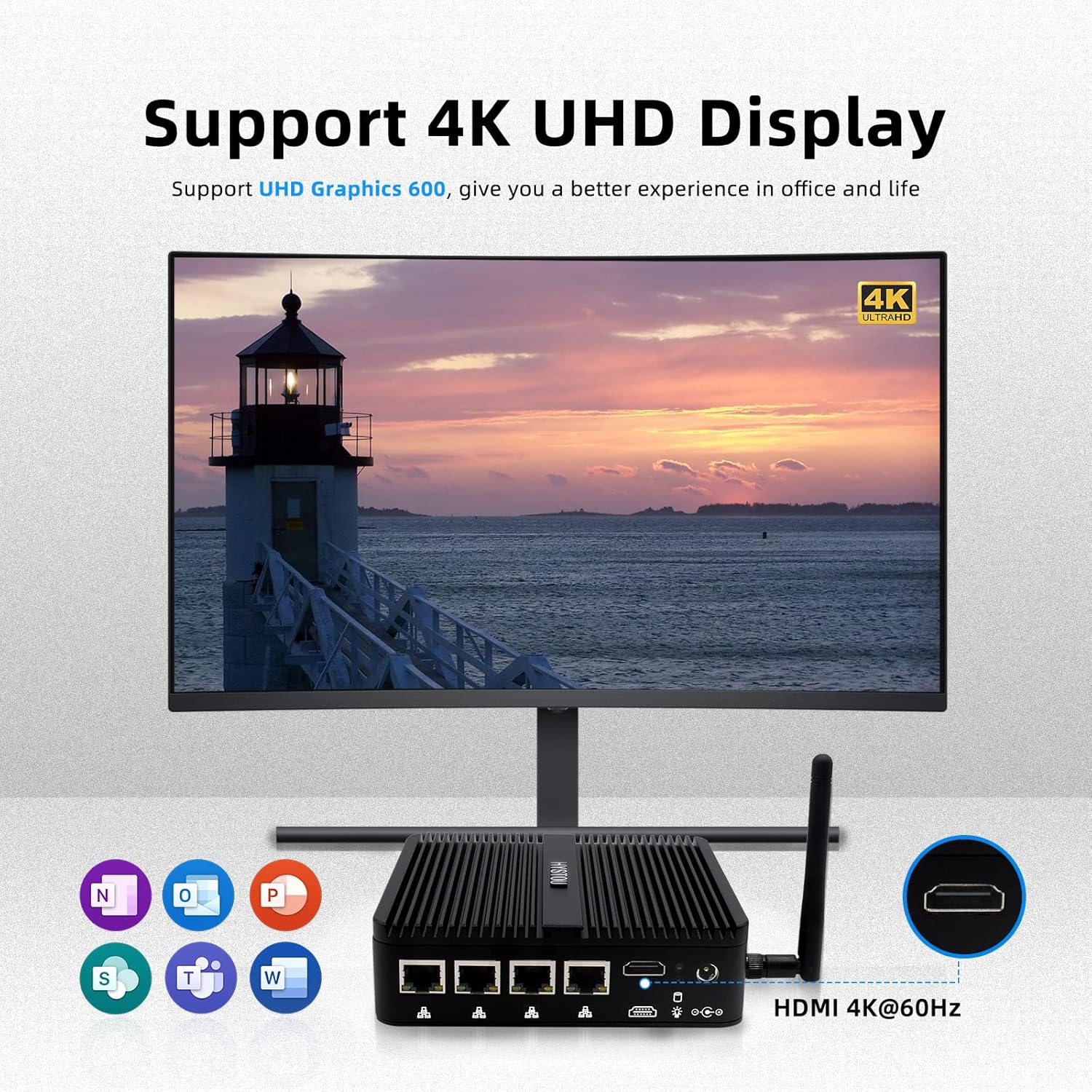 - 💡【Grossartige GPU-/Firewall-Hardware】Der Micro Router PC verfügt über 1 x HDMI-Anschluss, UHD Graphics 600 und unterstützt 4K (60 Hz). Geben Sie Ihnen ein super hervorragendes visuelles Erlebnis in der Anwendung. Leistungsstarke