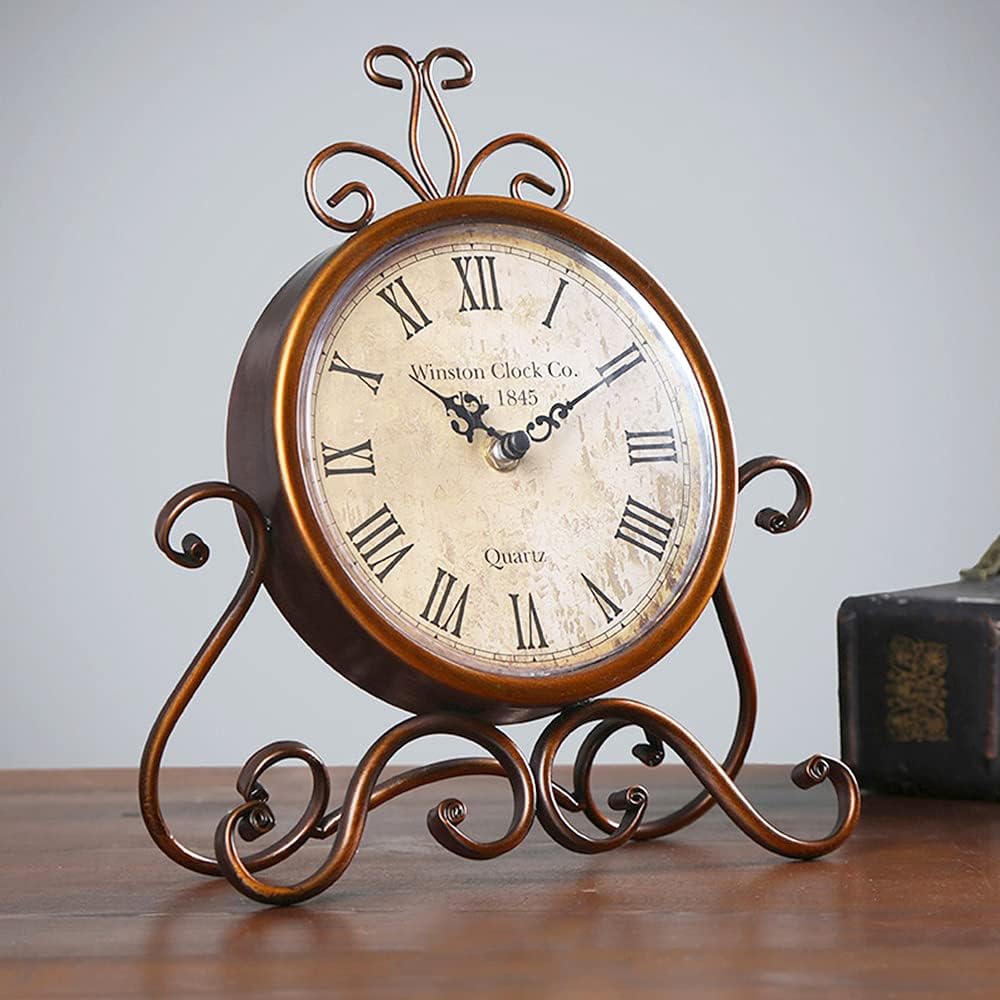 HZDHCLH Retro Silent Roman Tischuhr für Wohnzimmer Schlafzimmer Büro Kunst-Schreibtischuhr(Kupfer),
