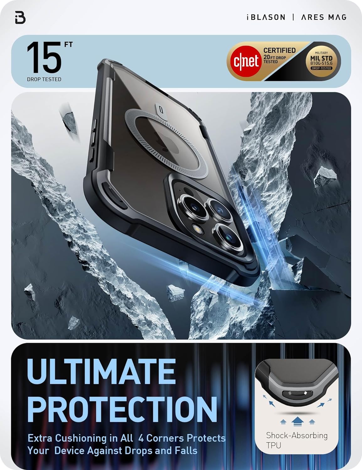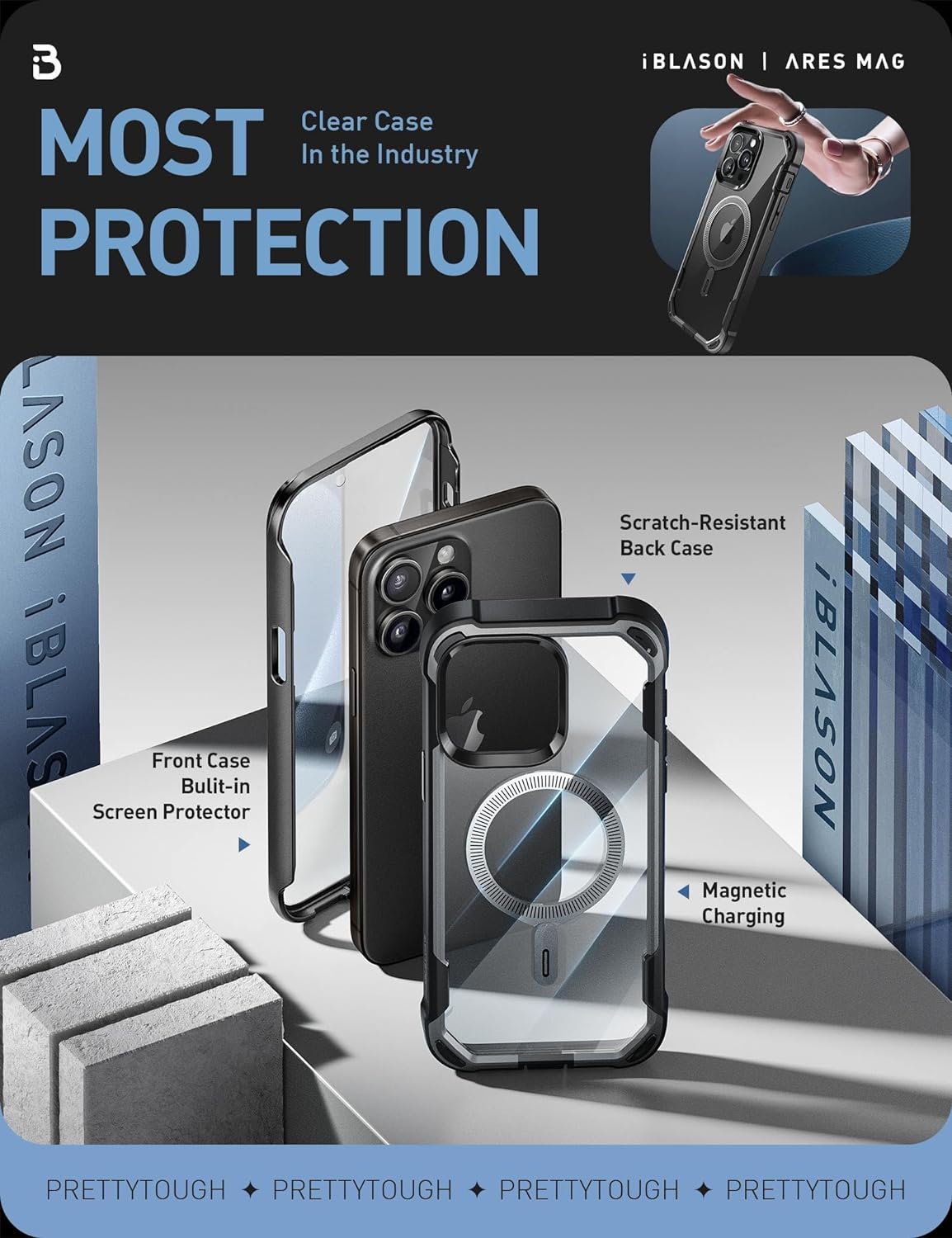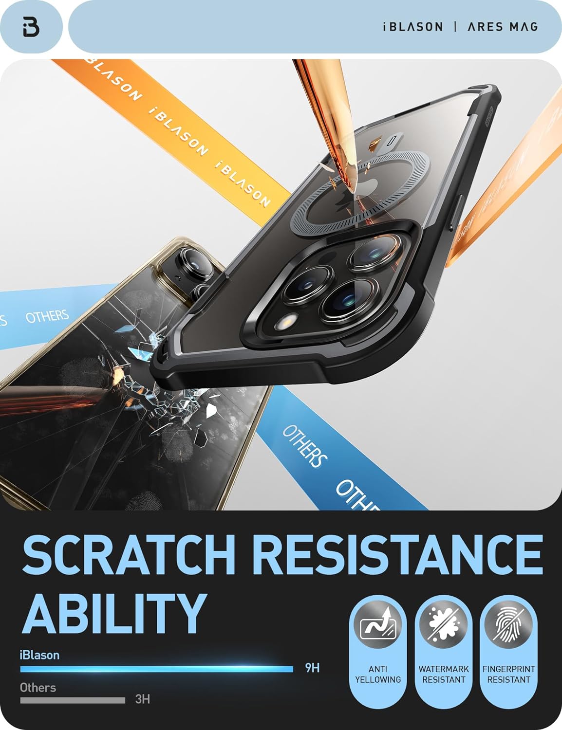 i-Blason Ares Mag Hülle für iPhone 15 Pro Max (6.7") 2023, Kompatibel mit MagSafe, Bumper Case Trans