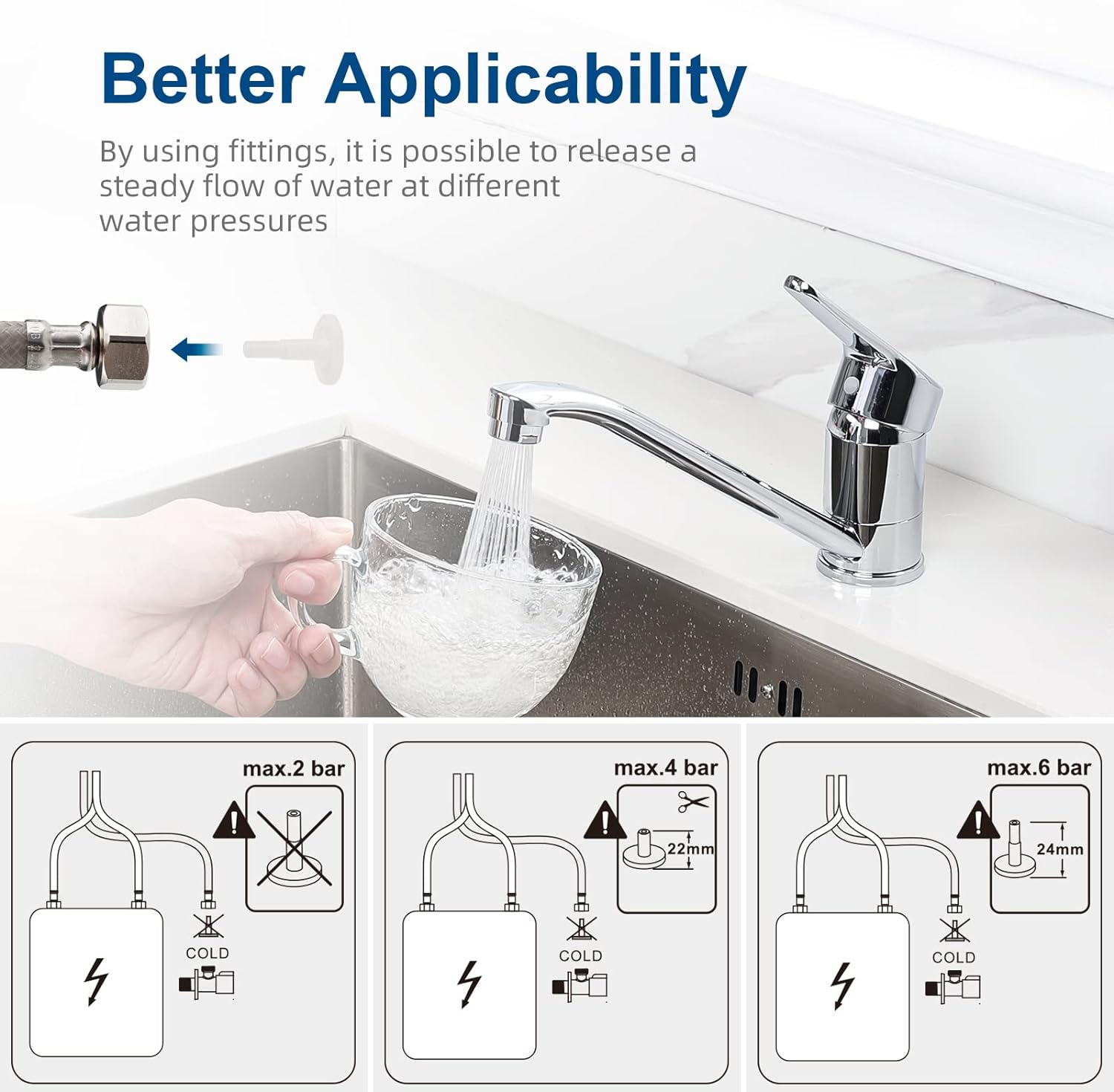 - Vielseitigkeit: Die normale Verwendung von Wasserhähnen mit unterschiedlichen Wasserdrücken kann durch das beigefügte Zubehör realisiert werden