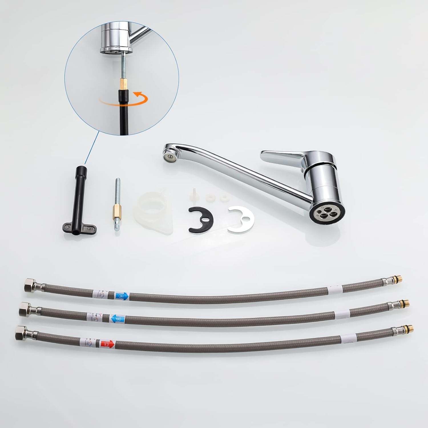 - Einfach Zu Installieren: Inklusive Zubehör und Schlauch. Die Installation des Küchenspülenhahns ist mit der mitgelieferten Anleitung einfach. Der spezielle Ausguss lässt sich leicht abnehmen und reinigen.