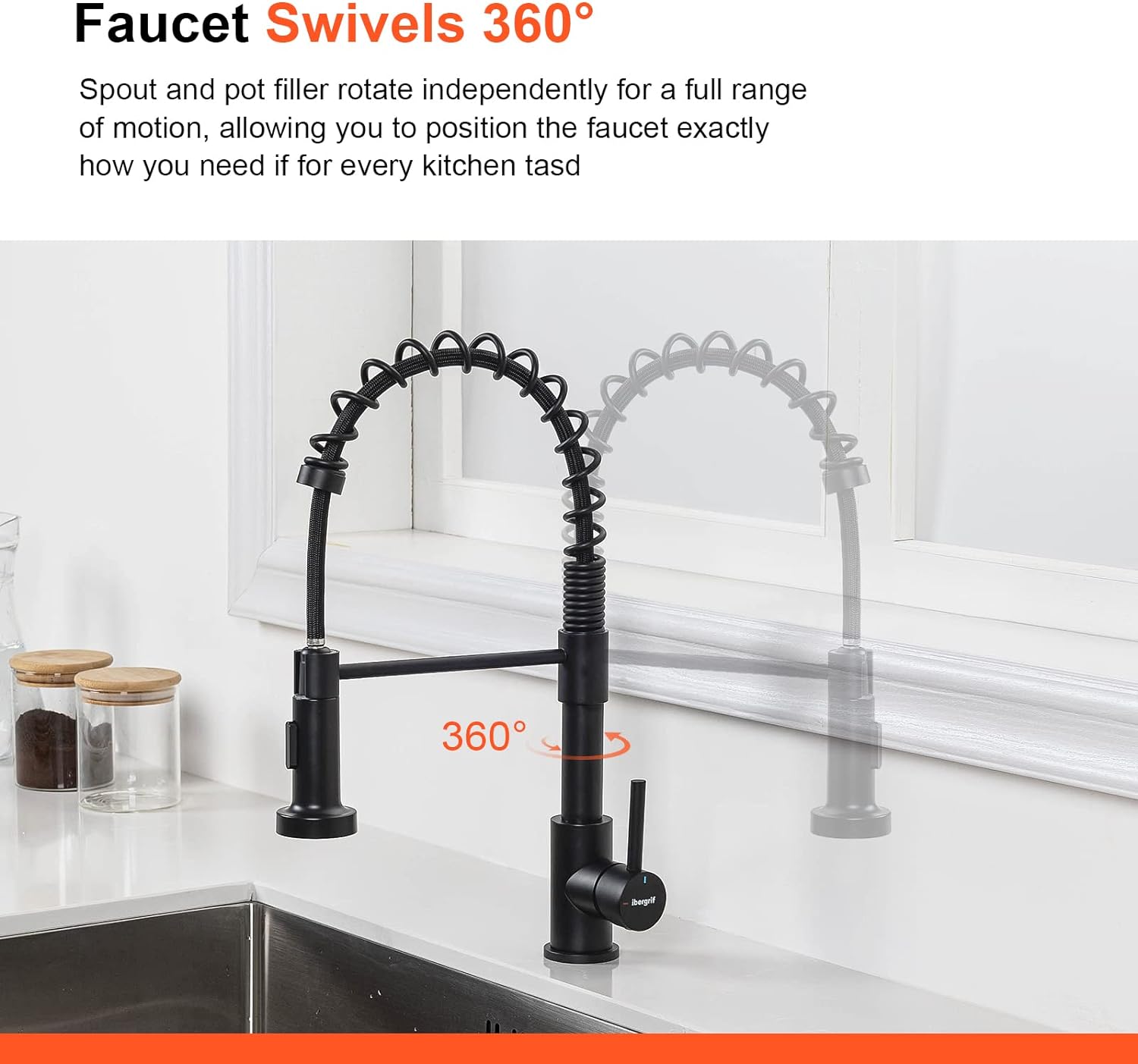 - Einziehbar und um 360° drehbar:-- Der Küchenarmatur ist einziehbar und um 360° schwenkbar.