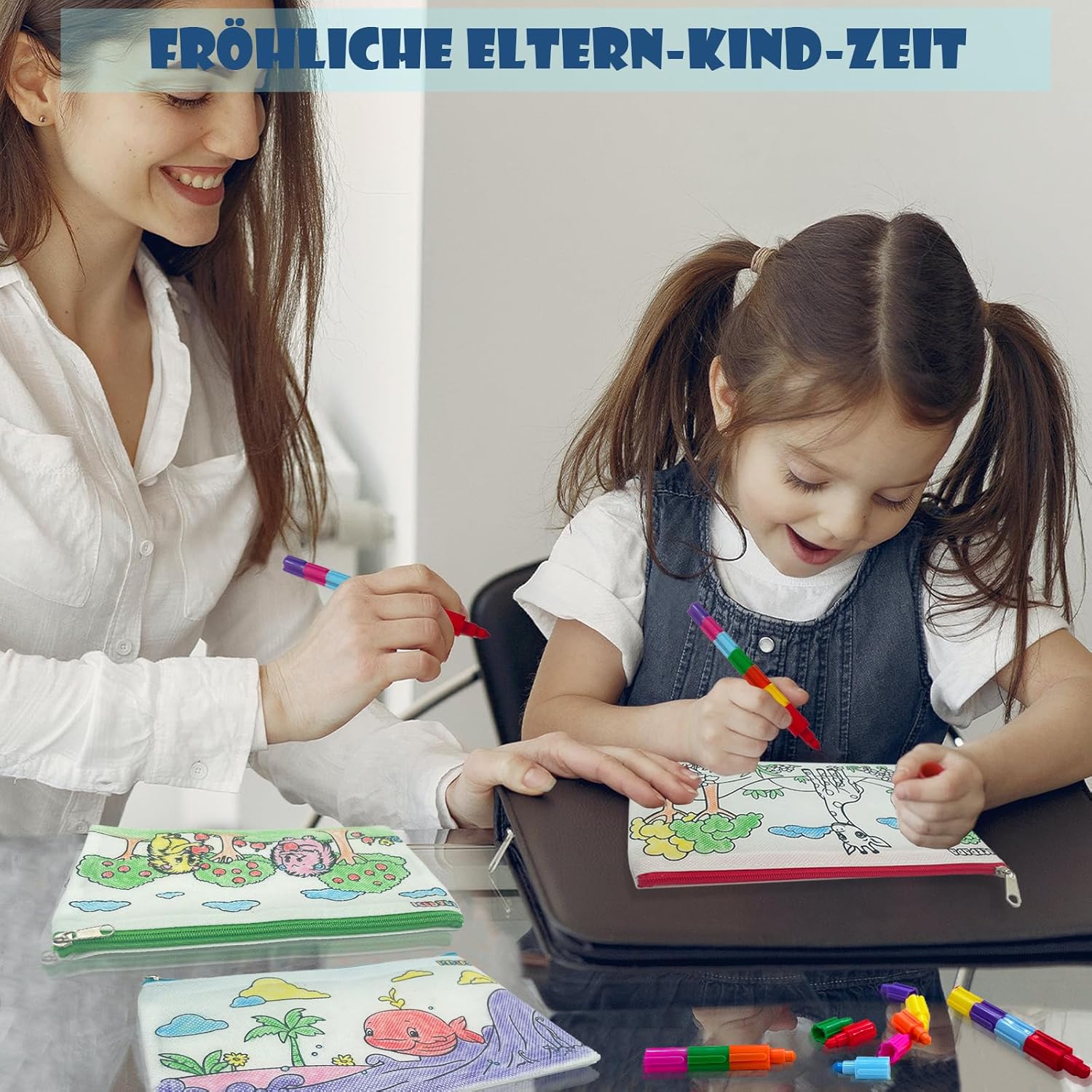 - 【Kreative Kleinigkeiten für Kinder】Das Stoffbeutel zum Bemalen mit vorgedruckten Motiven ist ein grosser Hit bei Kindern. In Kombination mit den Stapelstifte können die Kinder die Muster leicht ausmalen und beim Ausmalen Erfolgserlebnisse haben,