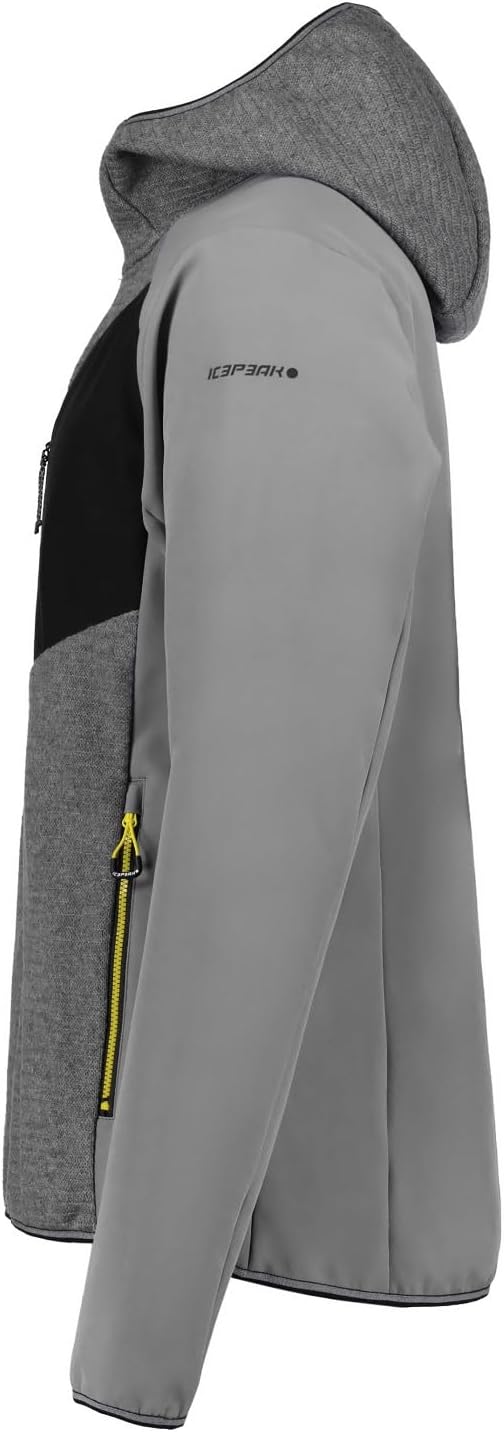 PRODUKTBESCHREIBUNGEN Icepeak Softshelljacke Danfort für Herren mit Kapuze Diese Jacke erfüllt die Anforderungen aktiver Outdoor-Leute auch in anspruchsvollen Bedingungen. Das strickartige Thermal-Material vorne und an der Kapuze sorgt für wohlige Wärme und Lüftung, während der glatte Softshell-Stoff Wind und Regen fernhält. Der Schnitt mit vorgeformten Ärmeln und einem längeren schützenden Rückensaum bleibt bei jeglicher Bewegung komfortabel. Praktische Reissverschlusstaschen sind in den Seitennähten und auf der Brust platziert. Icepeak Softshelljacke HerrenStrickartiges Thermal Material im Brustbereichglatter Softshell-Stoff seitlichvorgeformte Ärmelelastischer Saum und Armabschlussdurchgehender Reissverschluss mit Einklemmschutzdrei mit einem Reissverschluss verschliessbare TaschenFarblich abgesetzter Reissverschluss Material: 94% Polyester, 6% Elasthan